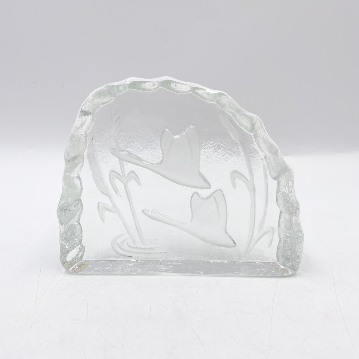 GEESE/SWAN 7” CRYSTAL GLASS BLOCK SCULPTURE