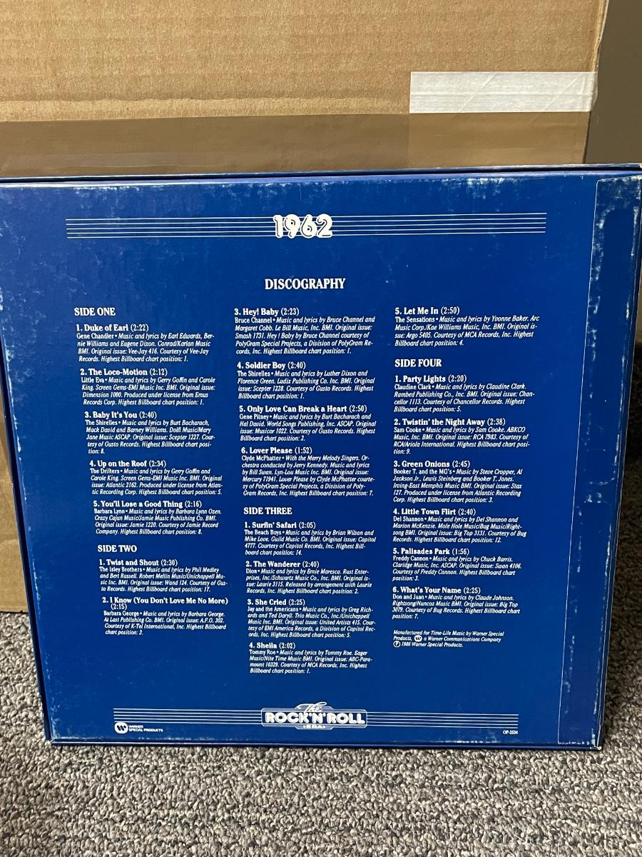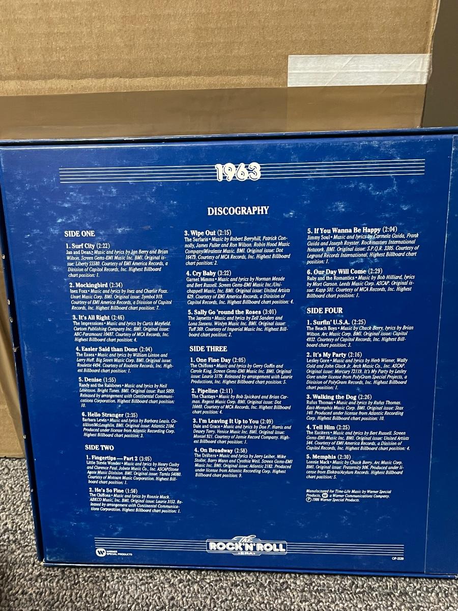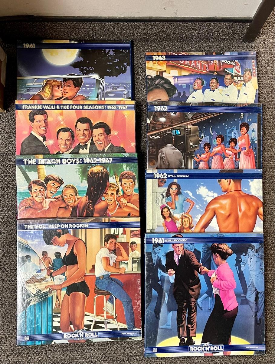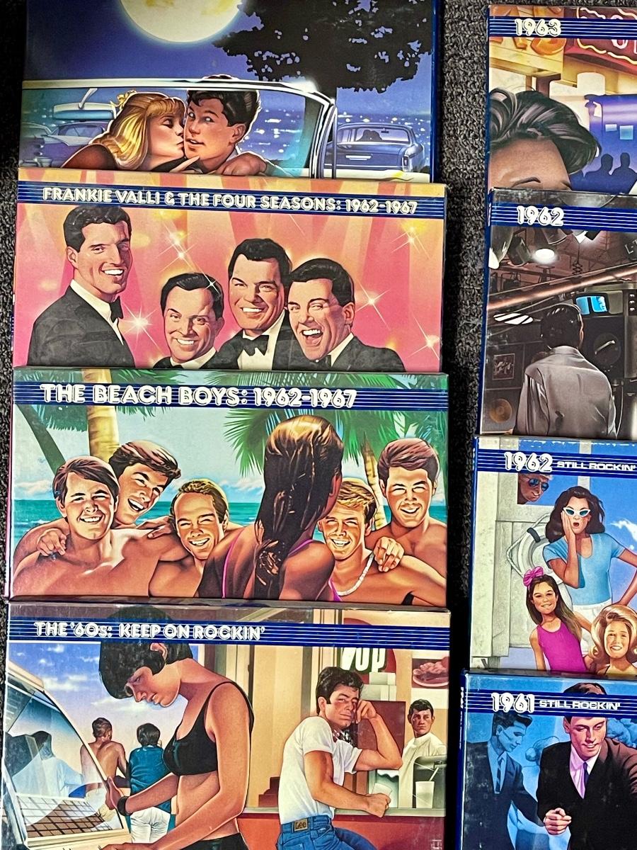 All records are in excellent shape, don't think they were ever played. Years covered are 1960-63, with The Beach Boys and Frankie Valli and the Four Seasons both covering 1962-67. These albums were released between 1986-1988.