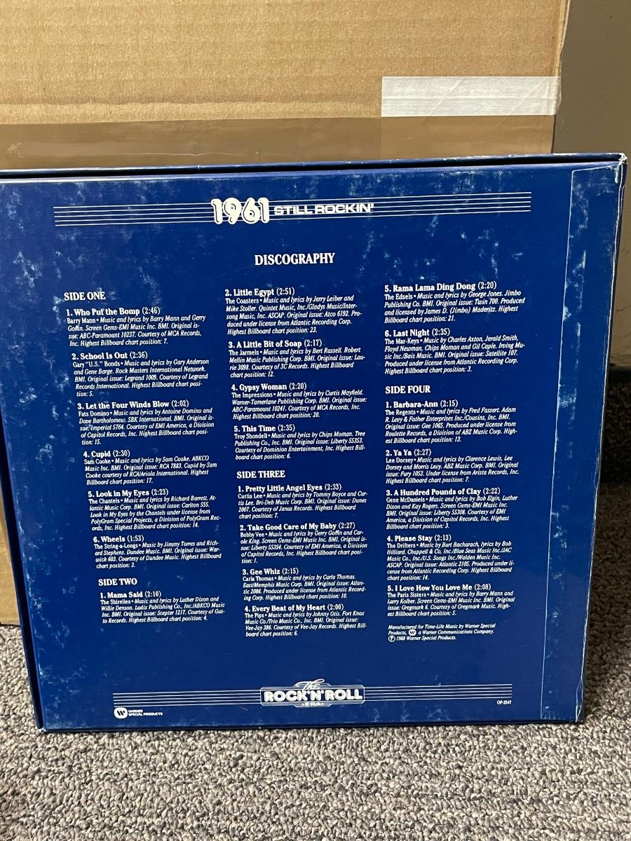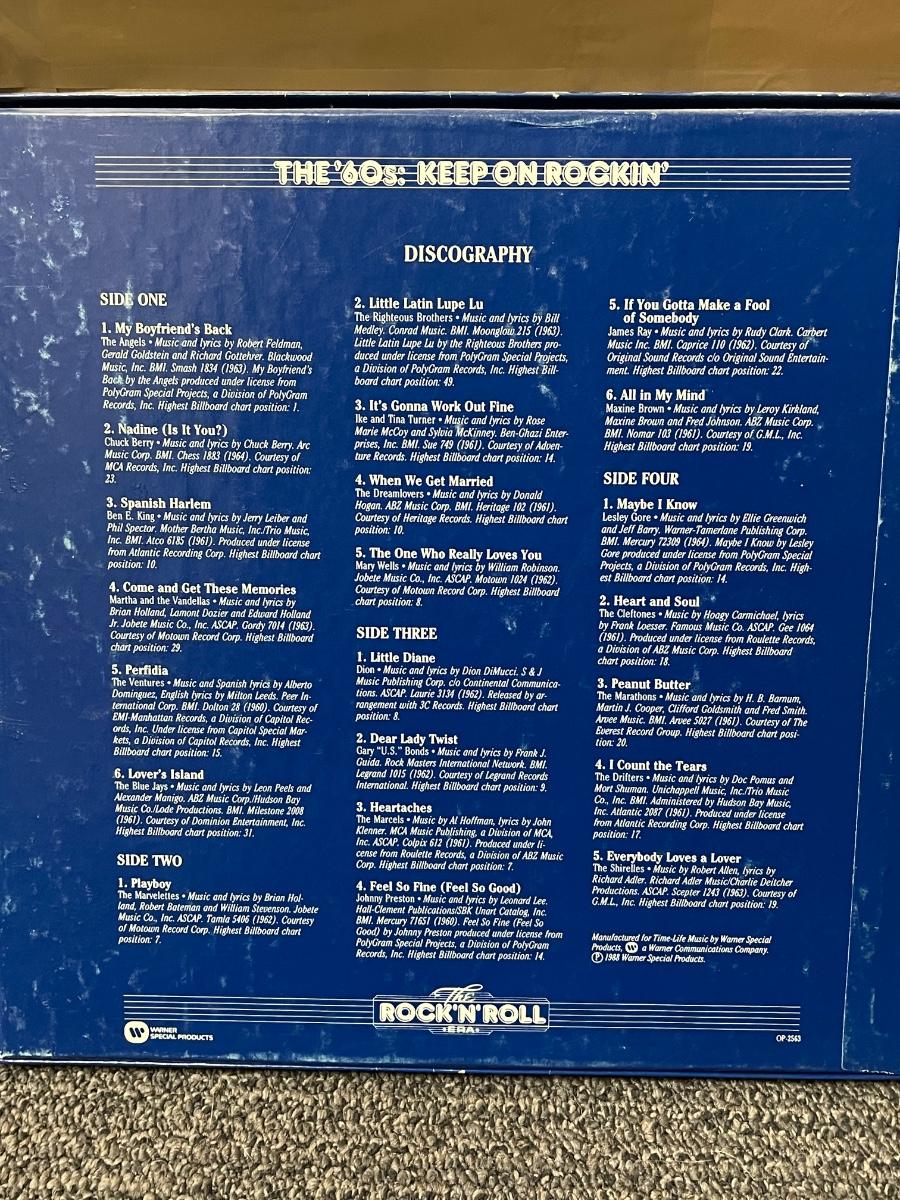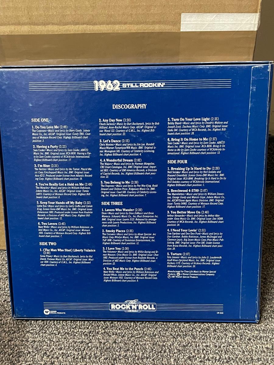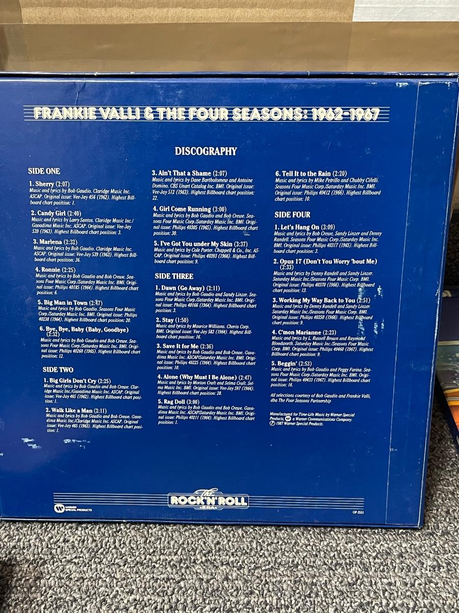 All records are in excellent shape, don't think they were ever played. Years covered are 1960-63, with The Beach Boys and Frankie Valli and the Four Seasons both covering 1962-67. These albums were released between 1986-1988.