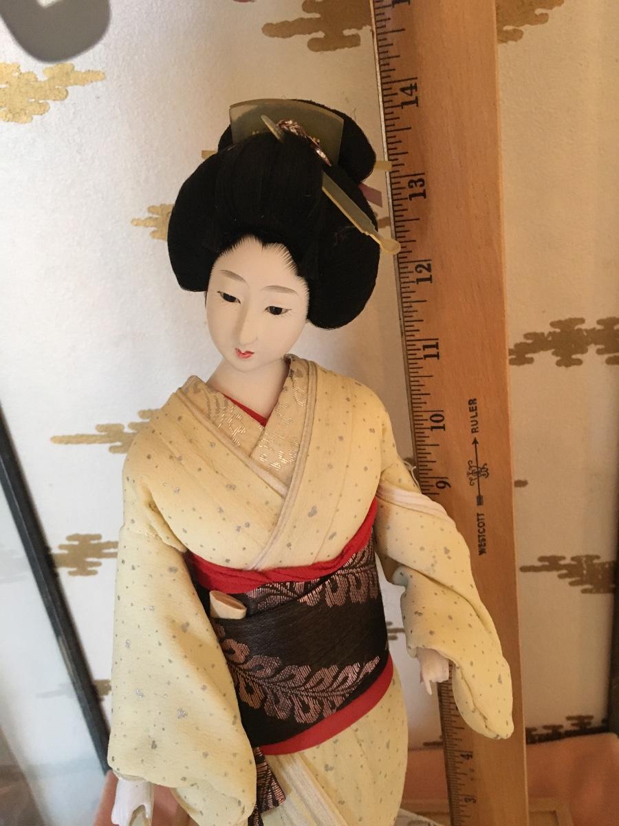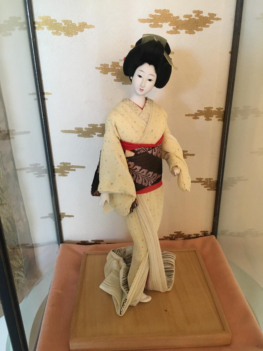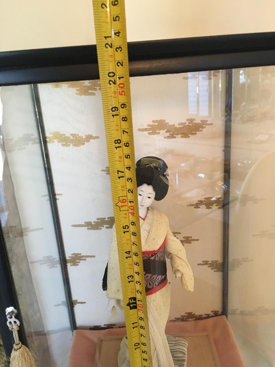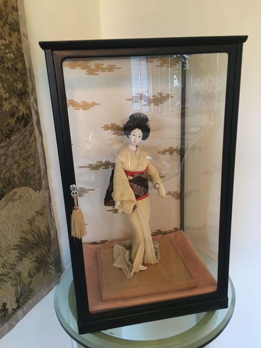 Large glass case containing geisha doll made in Japan. Both pieces are in excellenet condition.