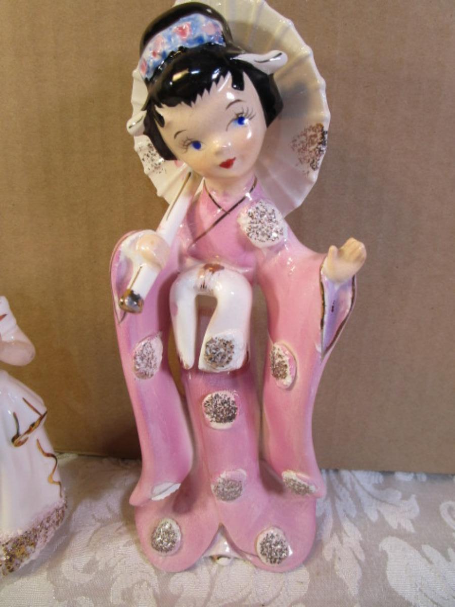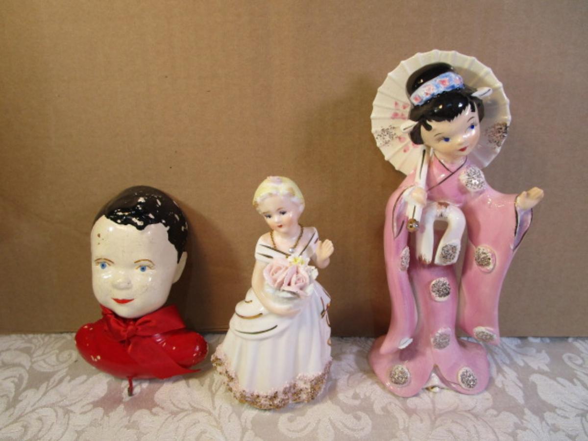 Geisha figurine, Lady figurine, plaster plaque of man with pot holder hook