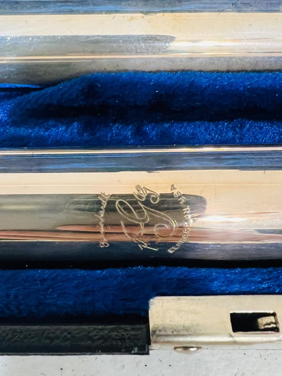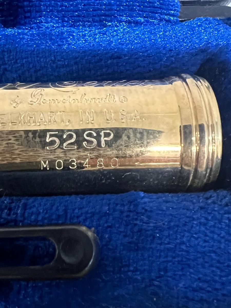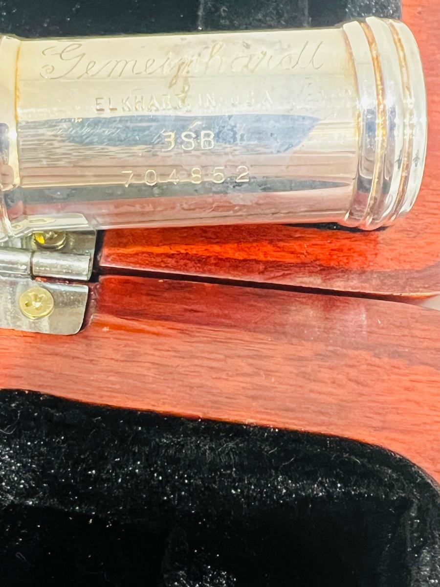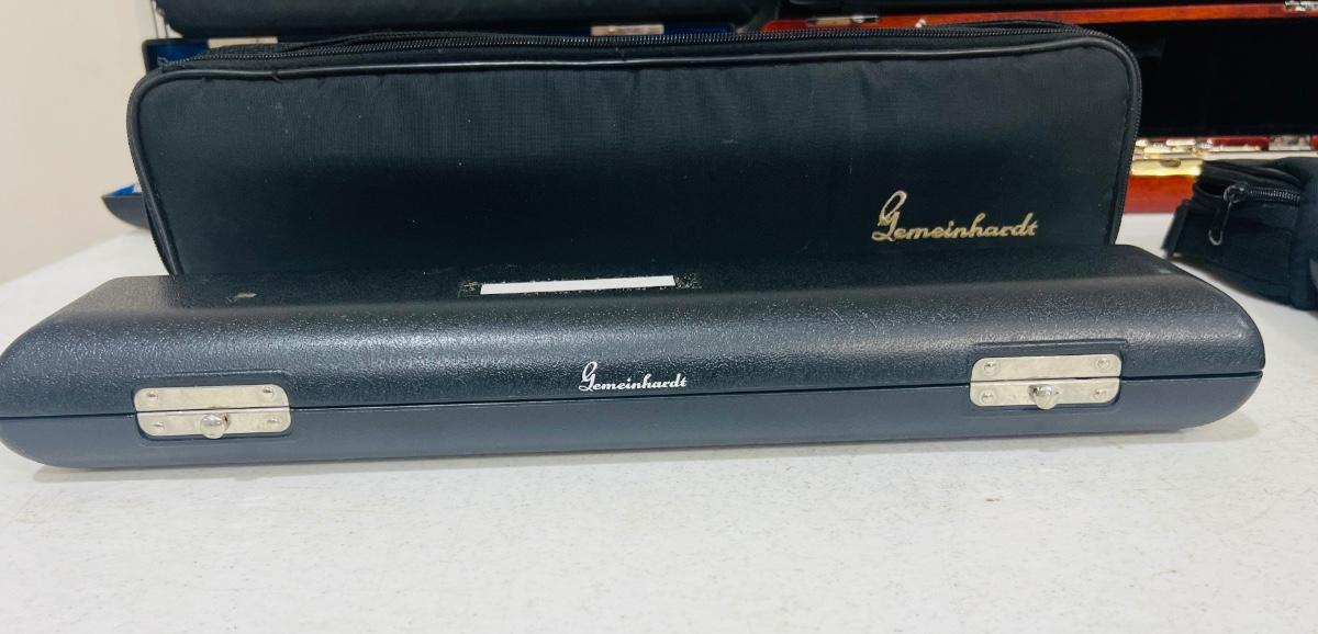 This lot has FIVE NICE Flutes. Please read all the details. each comes with a case and a caring bag. They are not tested. We will provide all details! They all appear to be in good condition. Gemeinhardt 3SHB 469067 flute- (Picture 1). Gemeinhardt Made an Elkhart 3SB 704853. Solid Silver. (Picture 2) Gemeinhardt 50 SERIES Made Engelhart,IN 52 SO M03489(picture 3) Gemeinhardt 50 SERIES 52 SP M27680 (Picture 4) Gemeinhardt 50 SERIES 530B 501.218 (Picture 5)