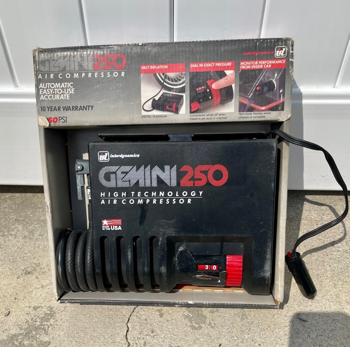 Gemini Portable Auto Air Compressor. Plugs in to auto cigarette lighter receptacle. Tested.