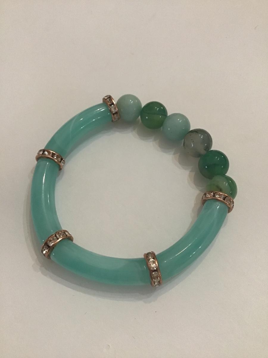Gemstone bead and acrylic stretch bracelet