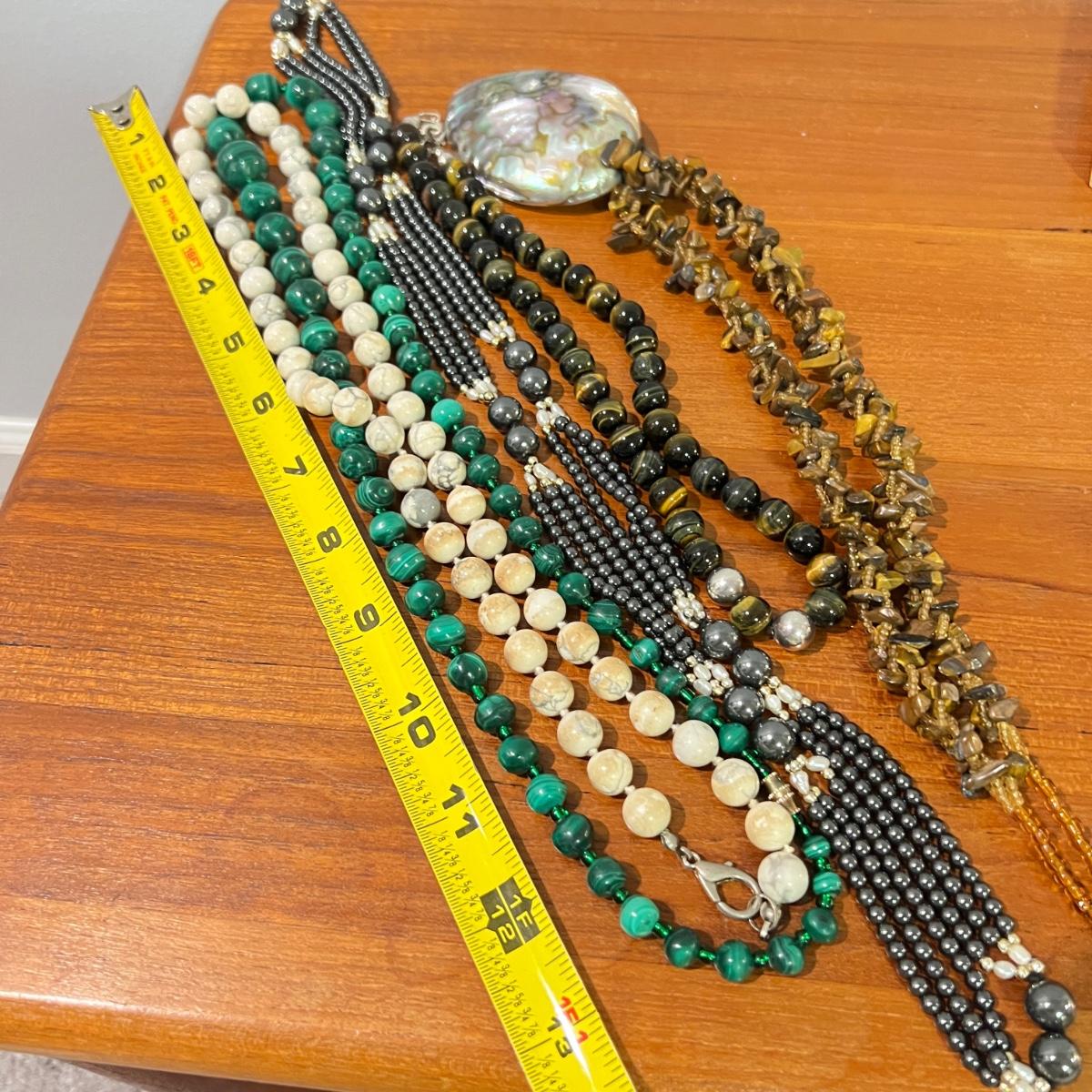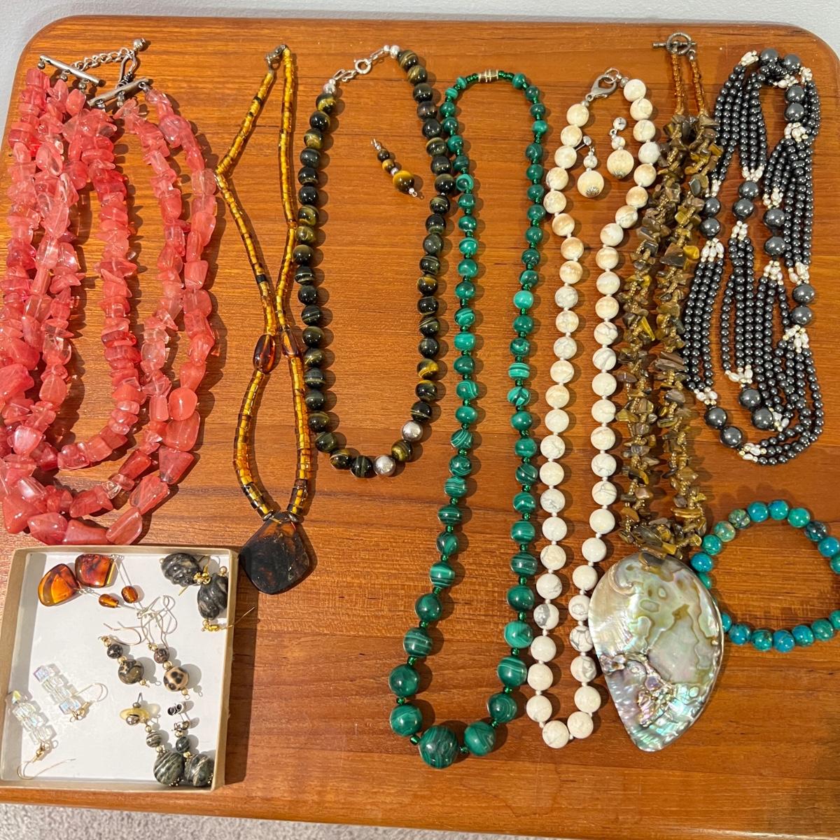 Gemstone Jewelry Lot - Tigers Eye, Amber, Hematite, Malechite
