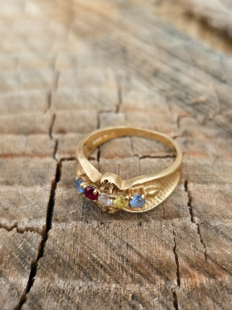 Vintage Mother's muti-colored gemstone ring 14K - 14 K gold marked Size 6