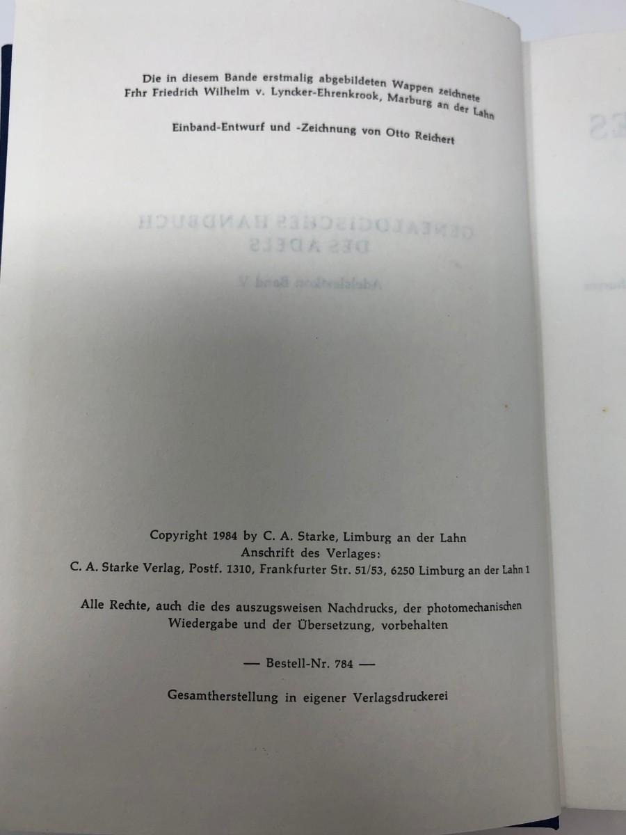 Description: Genealogisches Handbuch Des Adeles & Adelslexikon 1972,1974, 1978,1984 Limburg a.d. Lahn: C.A. Starke Verlag 1972,1974,1978,1984.Measurement approximately: 6.75” H.Material: Paper. Note: Gesamtreihe Band 53,58,67,84. 504,526,472,480 pp., Hard Cover, Text in German.