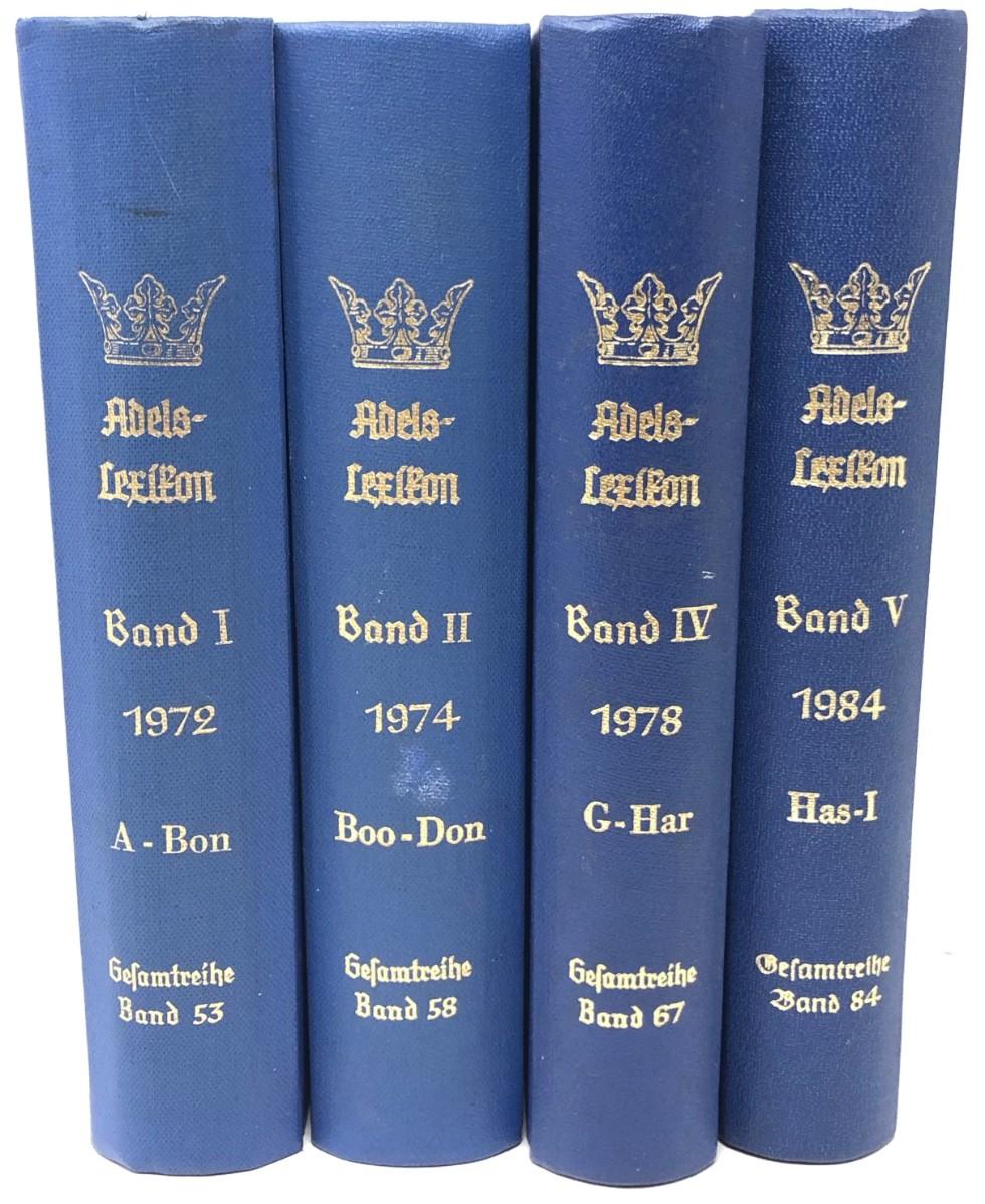 Description: Genealogisches Handbuch Des Adeles & Adelslexikon 1972,1974, 1978,1984 Limburg a.d. Lahn: C.A. Starke Verlag 1972,1974,1978,1984.Measurement approximately: 6.75” H.Material: Paper. Note: Gesamtreihe Band 53,58,67,84. 504,526,472,480 pp., Hard Cover, Text in German.