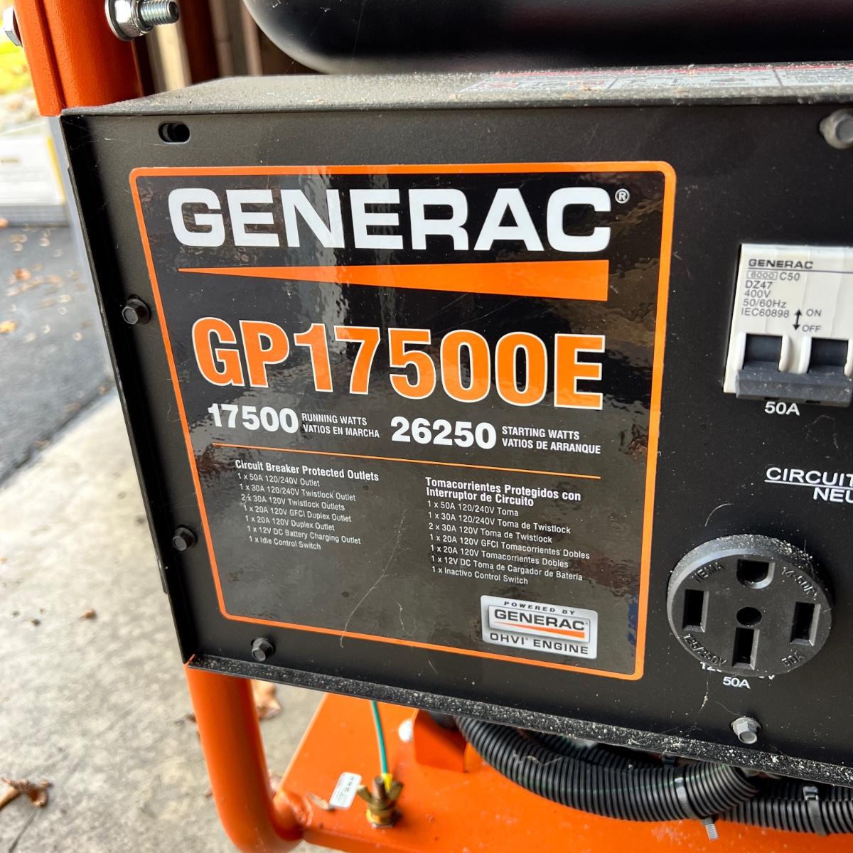 GENERAC GP17500E Portable Generator Less Than 1 Hour Use - See Full Description