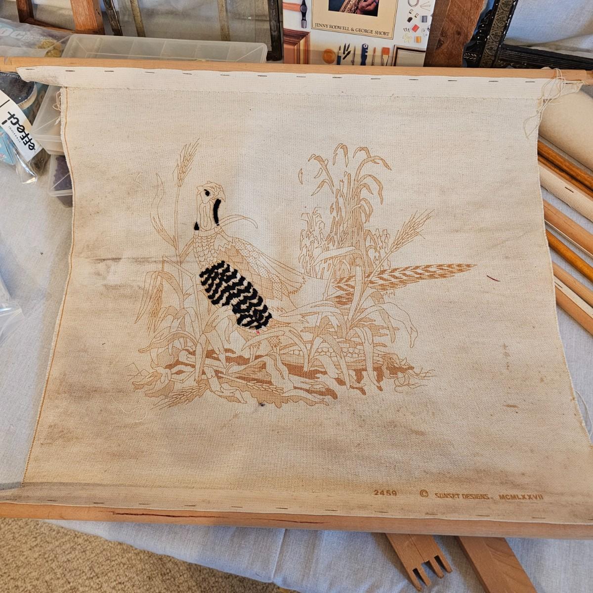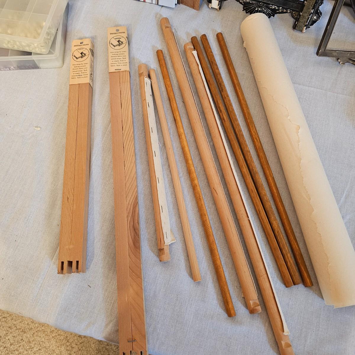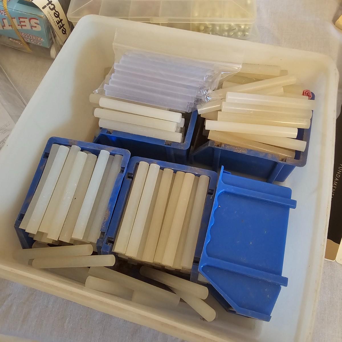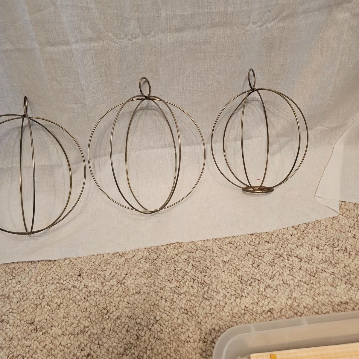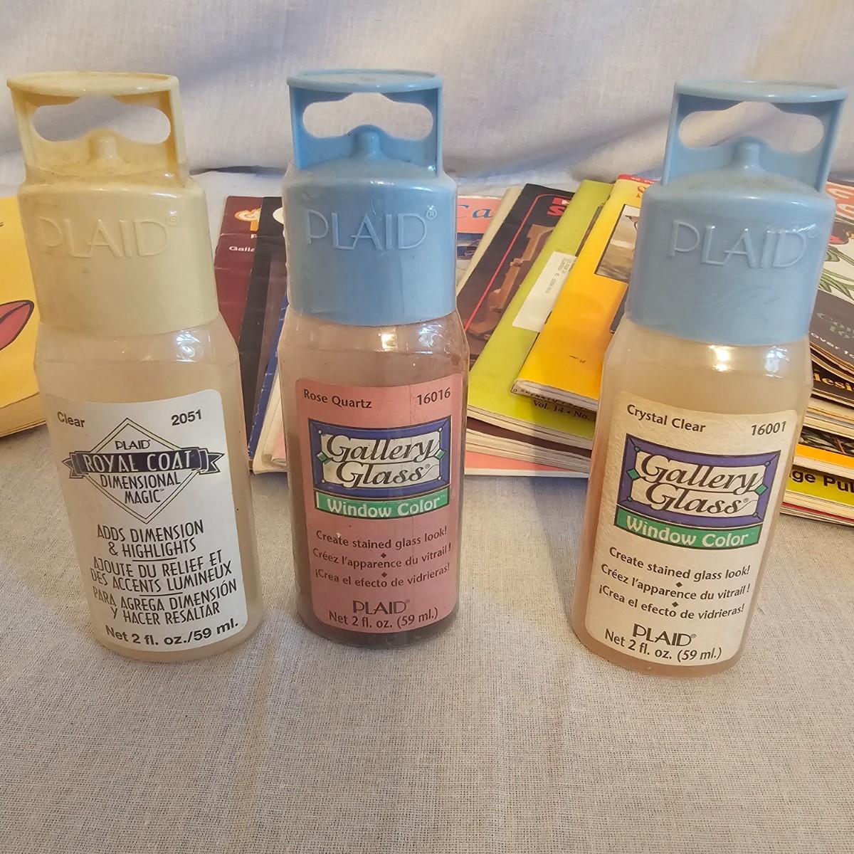 Frames, beads, kits, books and more. Several small wood frames range from 5" x 7"H to 12" x 14.5"H for the vintage oval frames. Wood in varying condition. Pipe cleaners, jewels, grommet setter, four glue guns with extra sticks, all four powered on when plugged in. A Sherwin Williams color book for matching purposes. Patterns for flags includes special outdoor material for construction. Books on Great Glass windows creation and a few bottles of color stain. Round metal spheres measure 8"D x 9.5"H and 9.5"D x 10.5"H. All containers holding items included. See photos for details. Local pickup only.