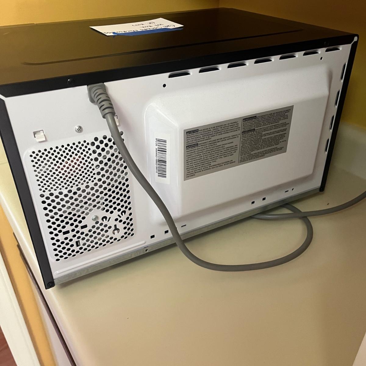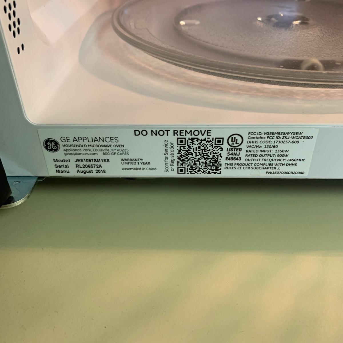 GE smart microwave with box. Microwave measures approximately, 19” x 13.5” x 11.5”H. Microwave powers on when plugged in. Please see photos for more details. Model number: JES1097SMISS