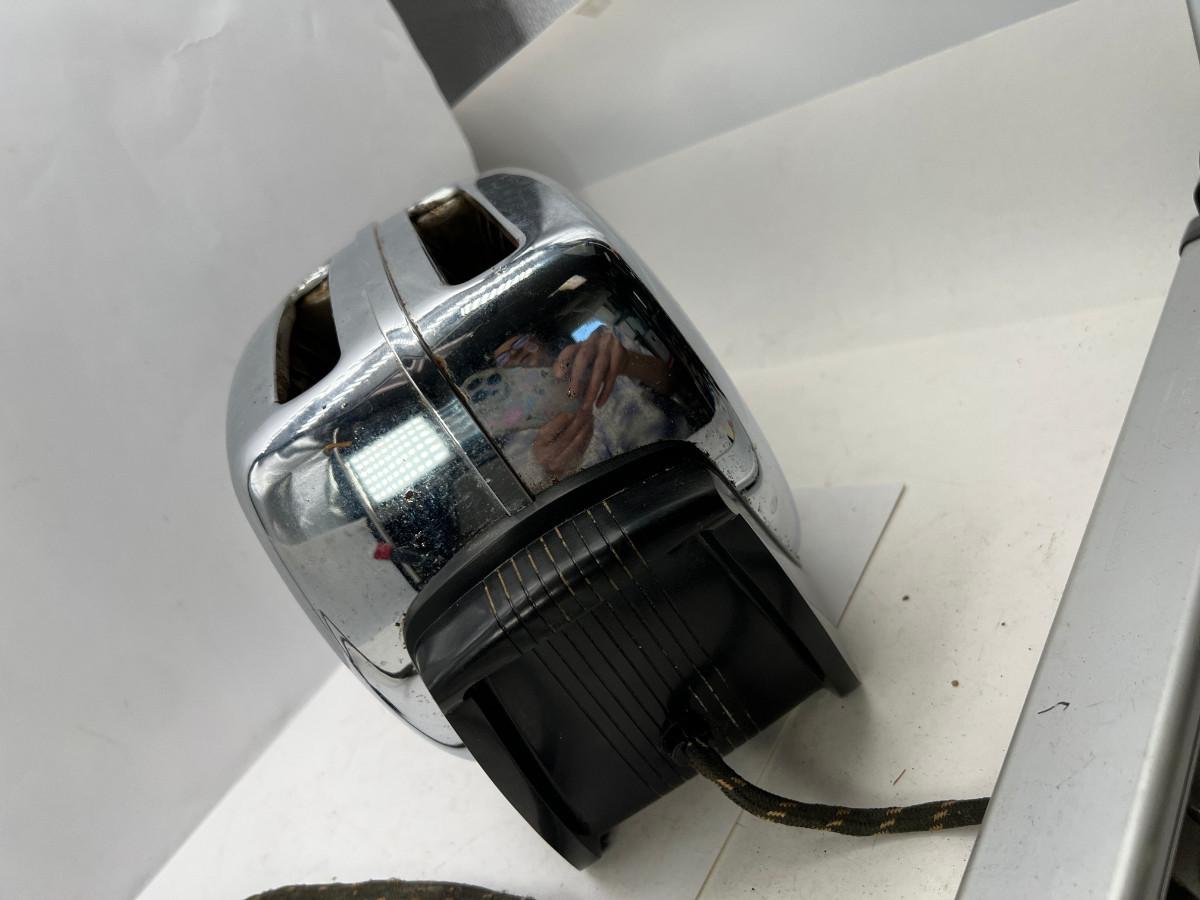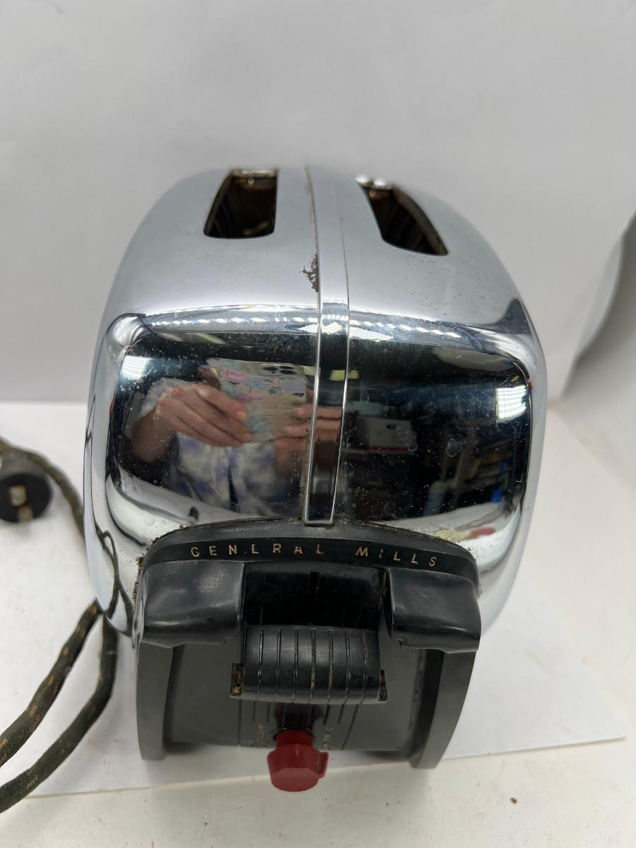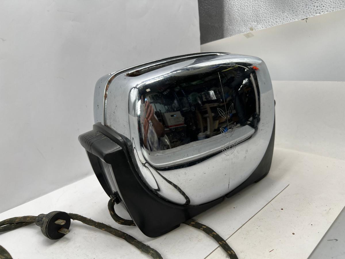 Vintage toaster with red knob. Unit is being sold as a "non-working" vintage electronic device that should be gone over by a qualified technician prior to use. May have rust, corrosion or other flaws see pictures.