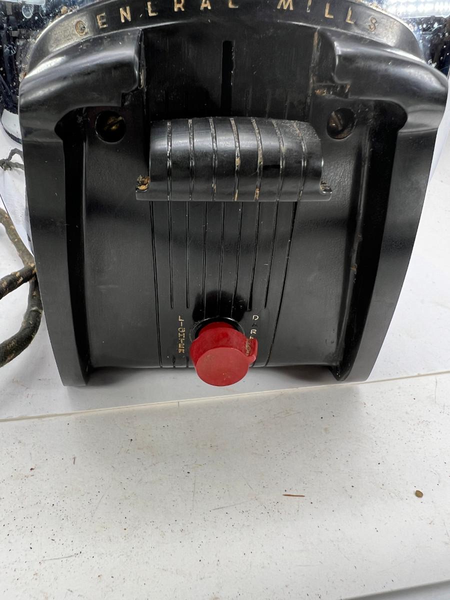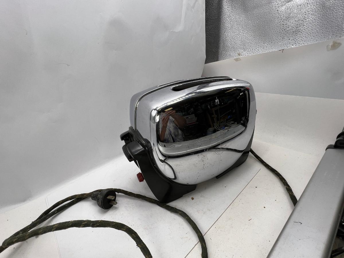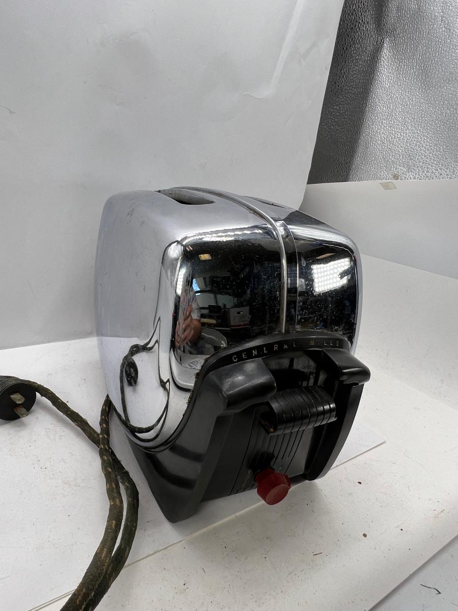 Vintage toaster with red knob. Unit is being sold as a "non-working" vintage electronic device that should be gone over by a qualified technician prior to use. May have rust, corrosion or other flaws see pictures.