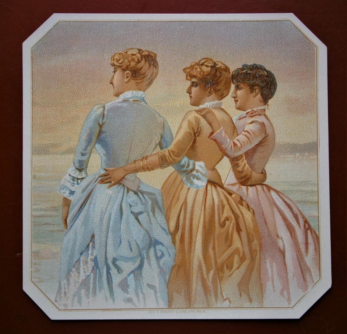 Generic Outer Cigar Label with Image of Three Young Women, from the early 1900's or earlier, 4 1/2 x 4 1/2 in., lithographed paper.