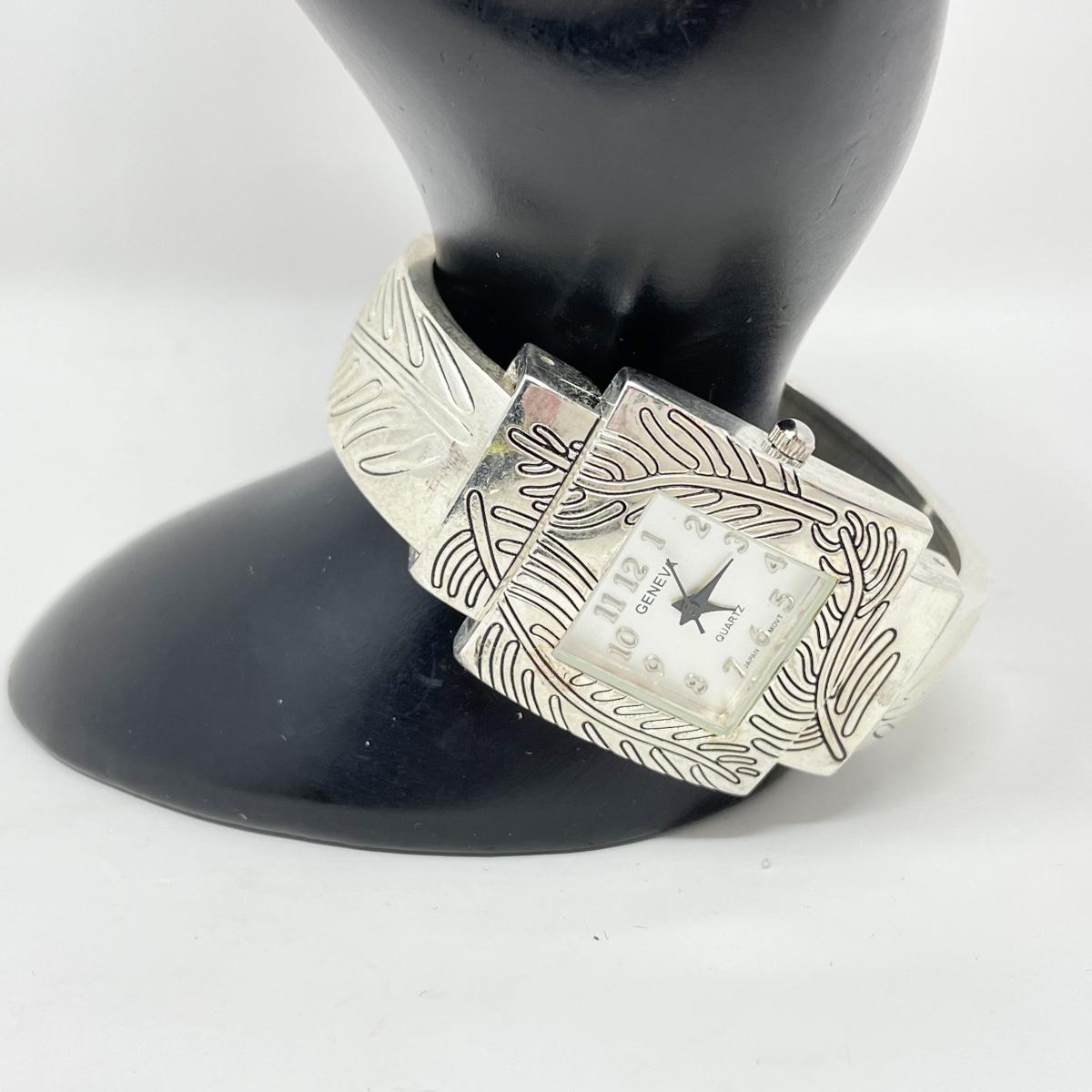 GENEVA QUARTZ SILVER TONED CUFF WATCH - WORKS!