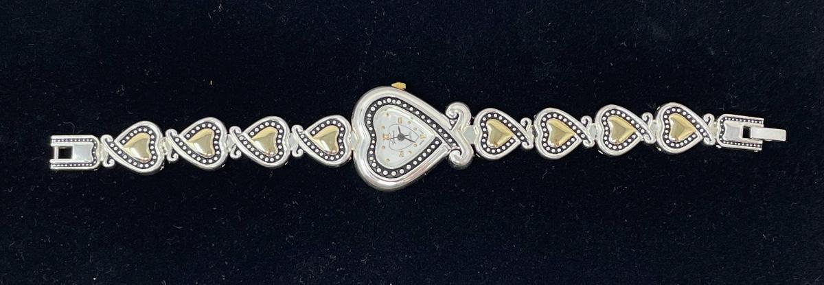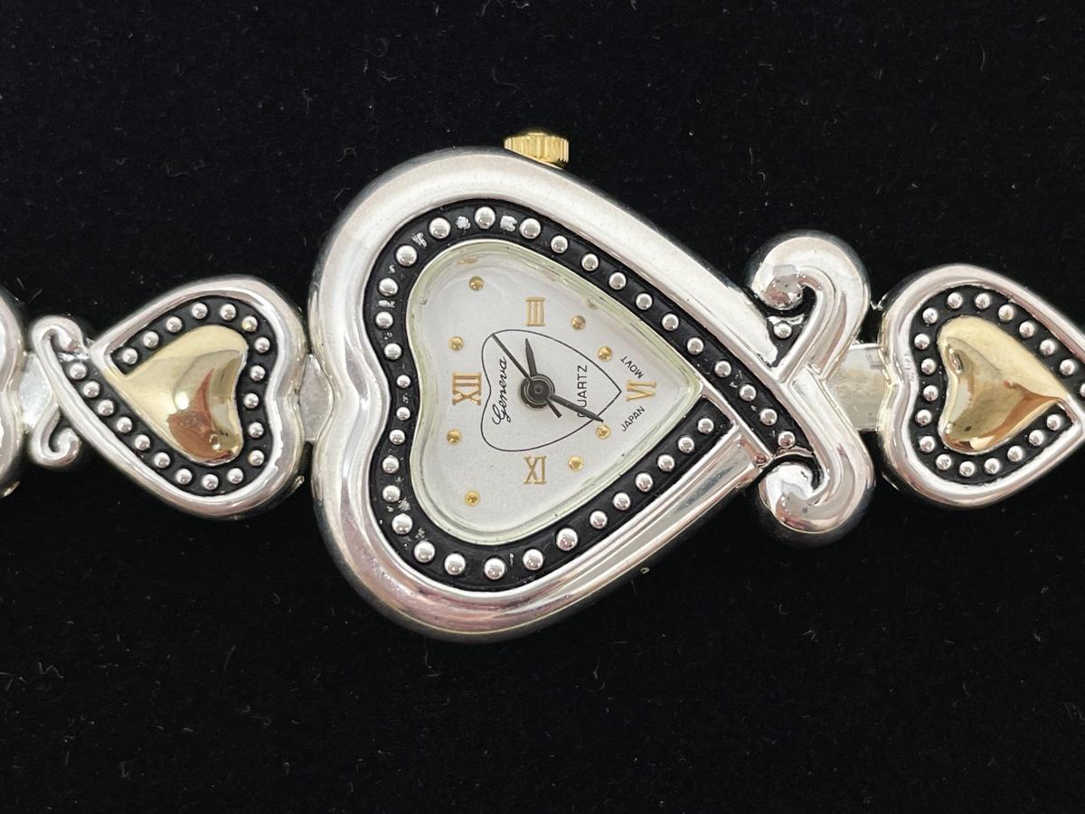 GENEVA SILVER & GOLD TONED QUARTZ HEART WATCH - WORKS!