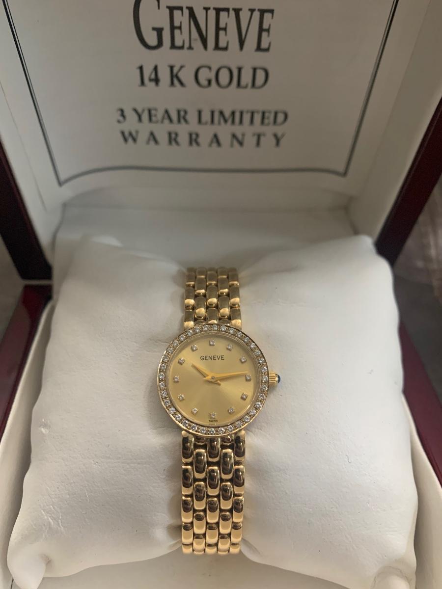 Geneve 14k Gold / Diamonds Ladies Watch in Dispaly Box