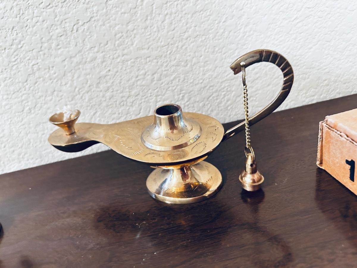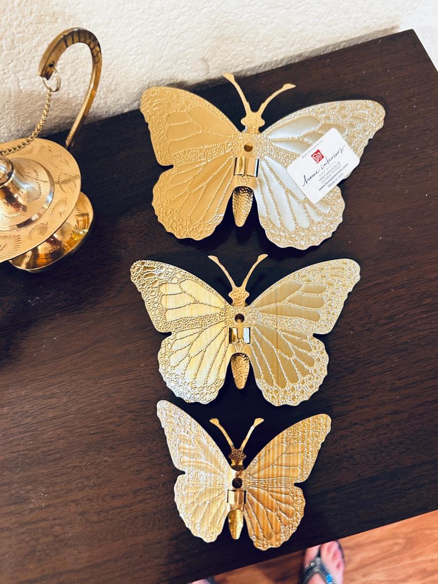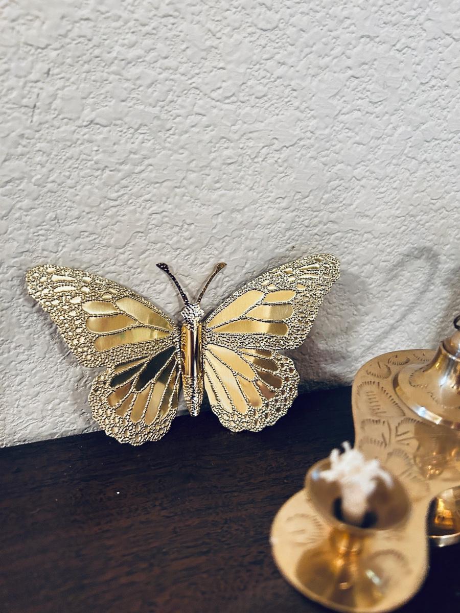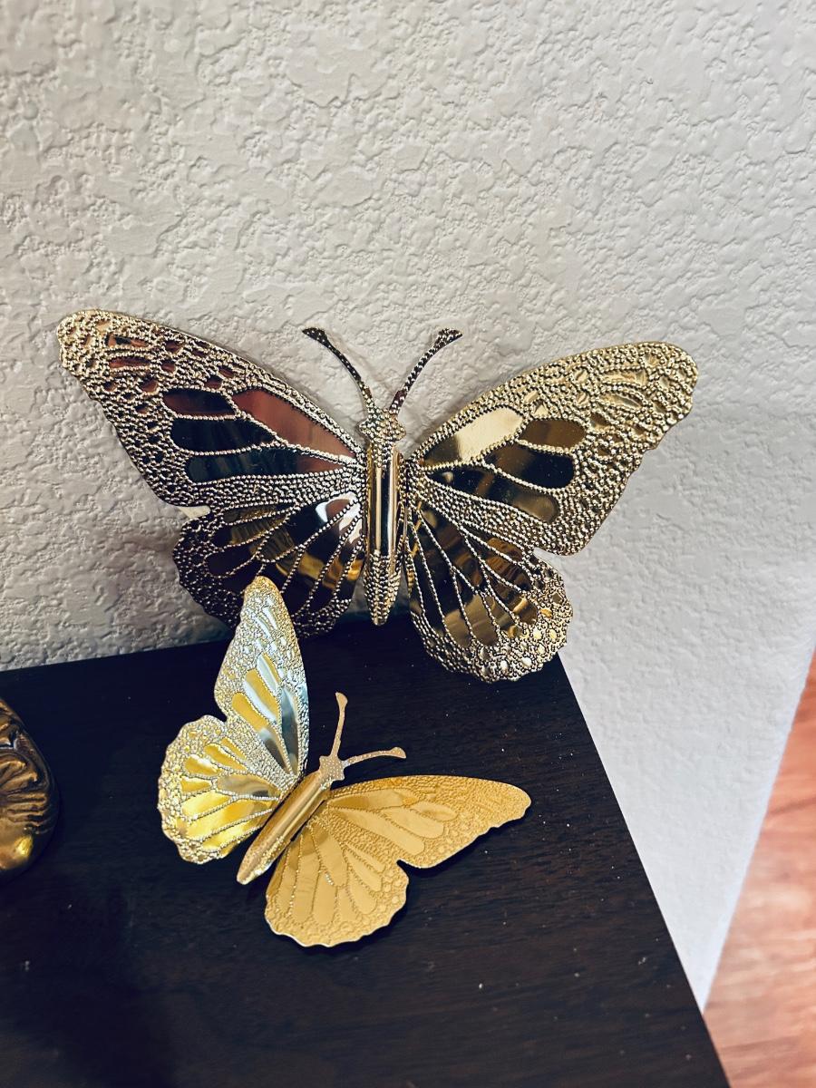 UNIQUE BRASS OIL LAMP, FILLED BRASS DOLPHIN, AND HOME INTERIORS BUTTERFLIES