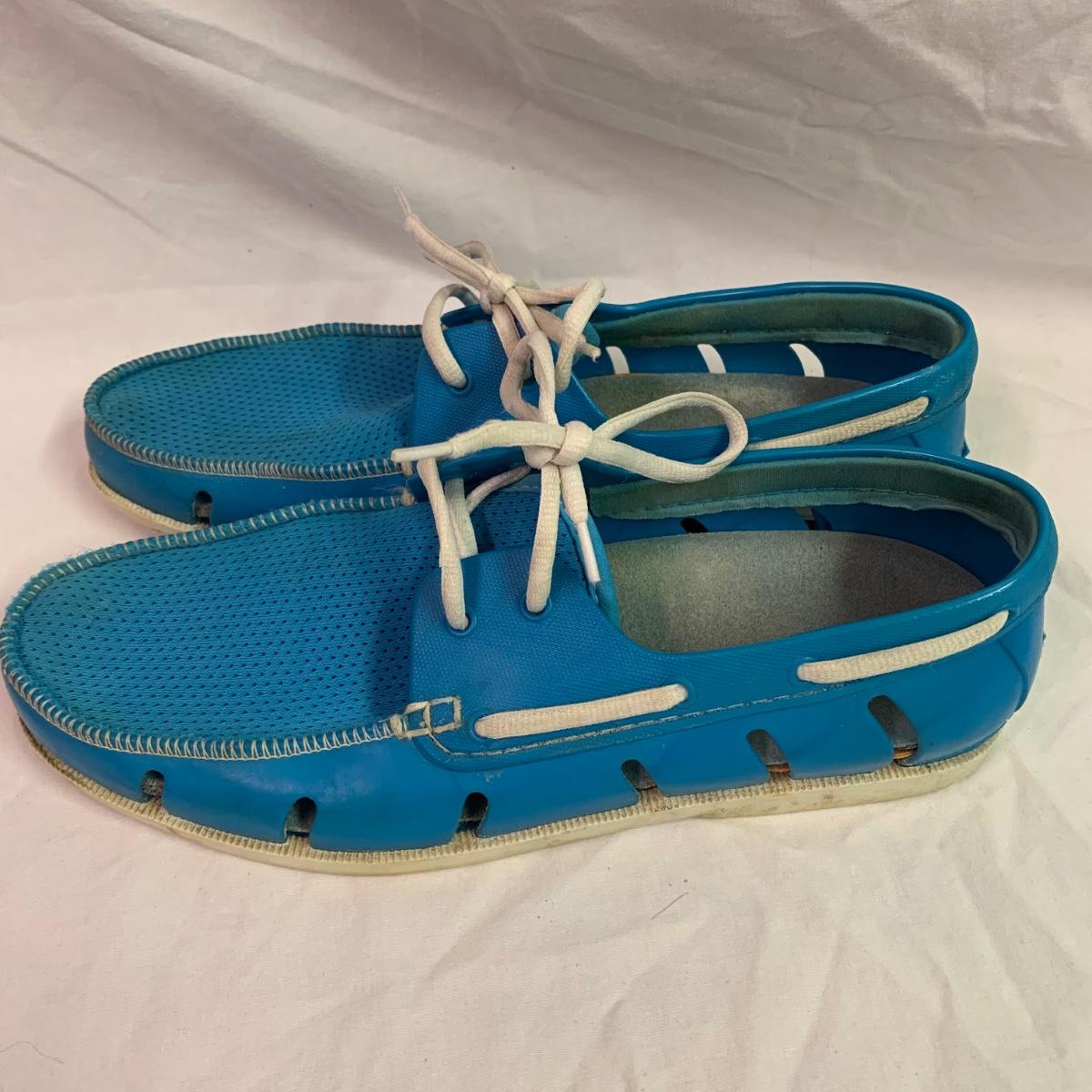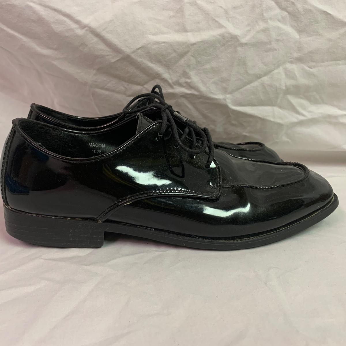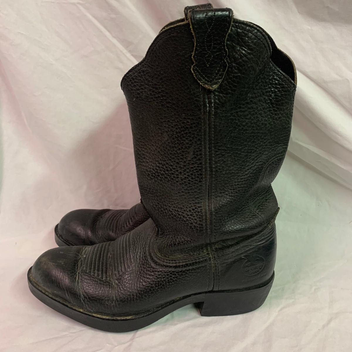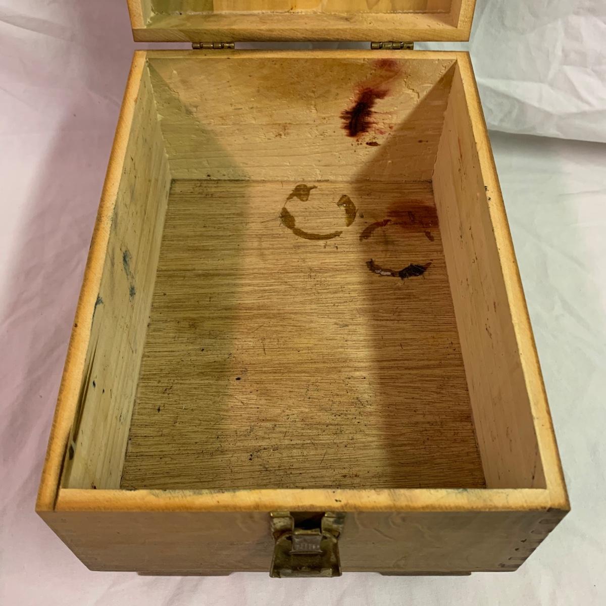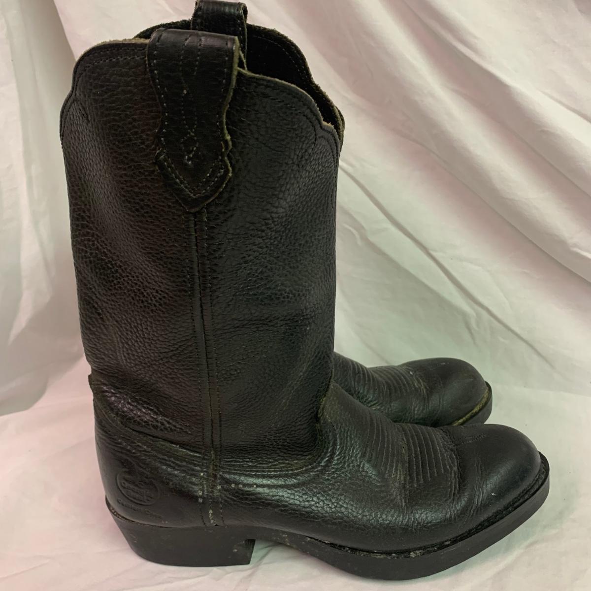 Gentlemen’s shoes and shoeshine valet with brushes lot. This lot includes wooden shoeshine valet box with three brushes and polishing cloths, one pair of black men’s size 10 Georgia work boots, one pair of blue five flip shoes in size 8-9, and one pair of black polished Jean Yves size 10 shoes. All shoes have been used and show signs of wear. See photos for more details. Shipping available.