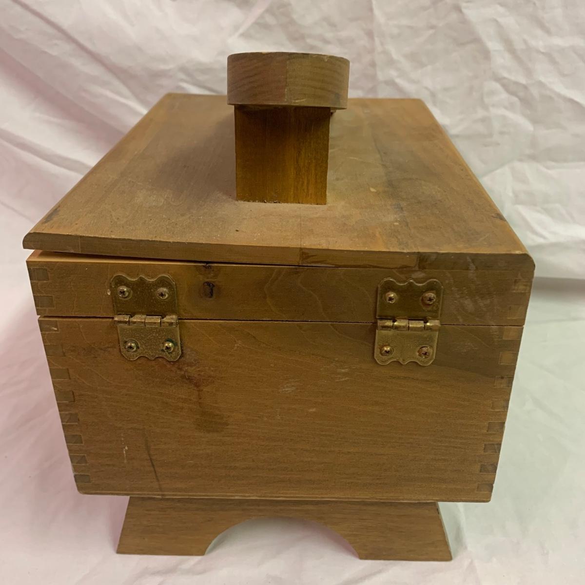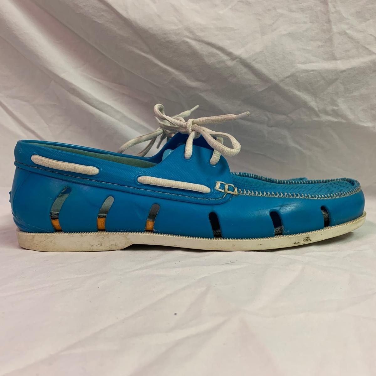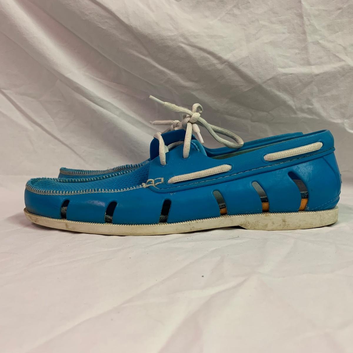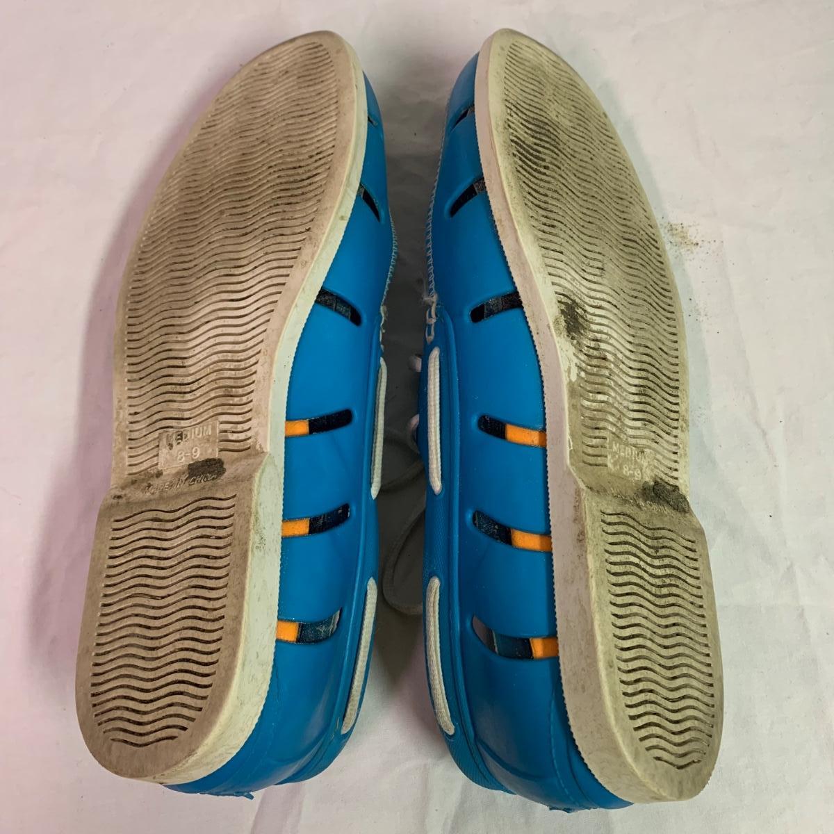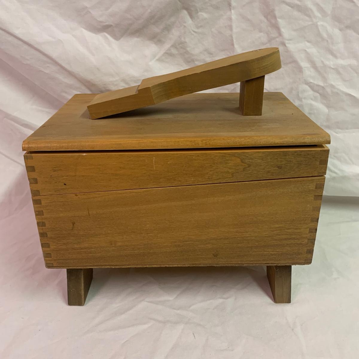 Gentlemen’s shoes and shoeshine valet with brushes lot. This lot includes wooden shoeshine valet box with three brushes and polishing cloths, one pair of black men’s size 10 Georgia work boots, one pair of blue five flip shoes in size 8-9, and one pair of black polished Jean Yves size 10 shoes. All shoes have been used and show signs of wear. See photos for more details. Shipping available.
