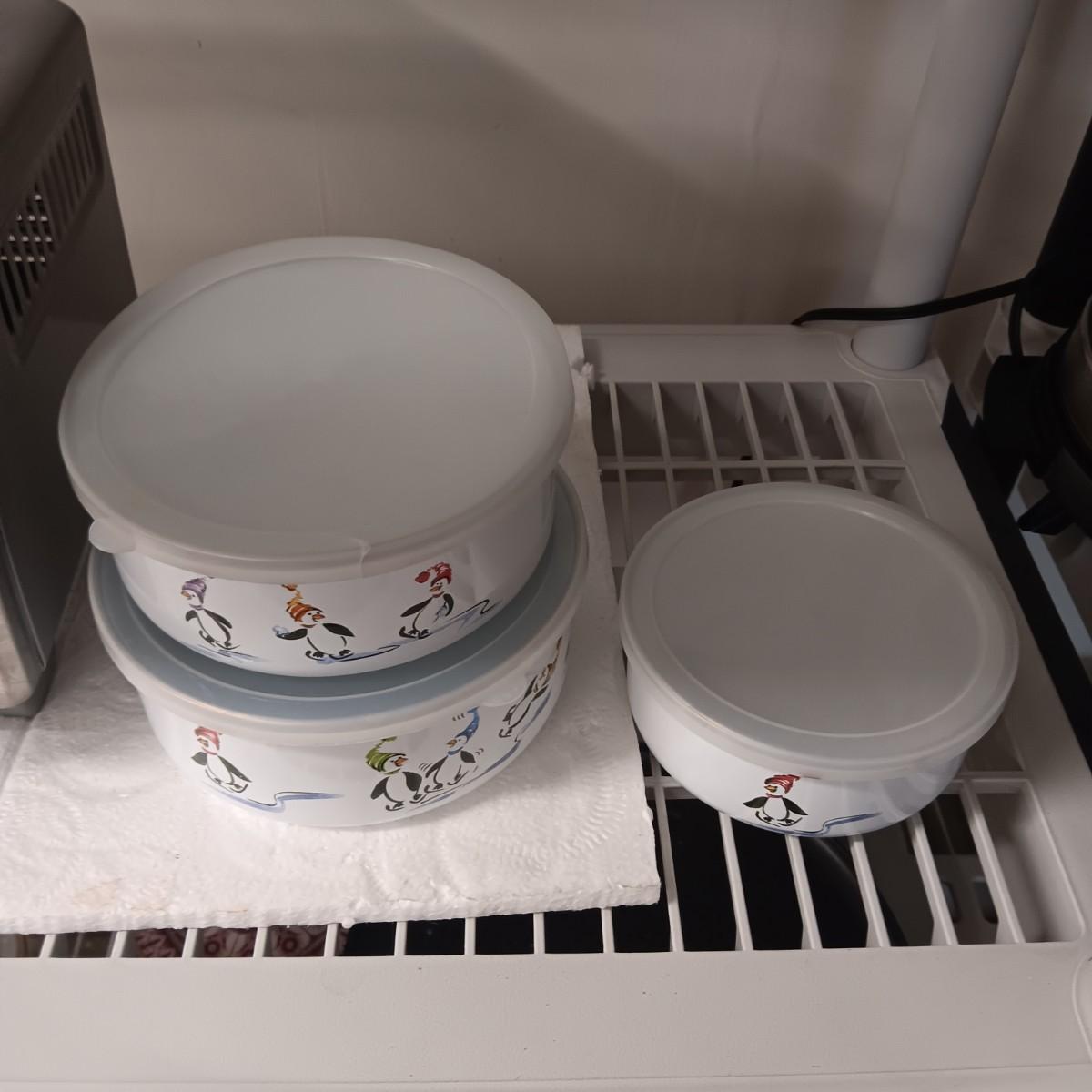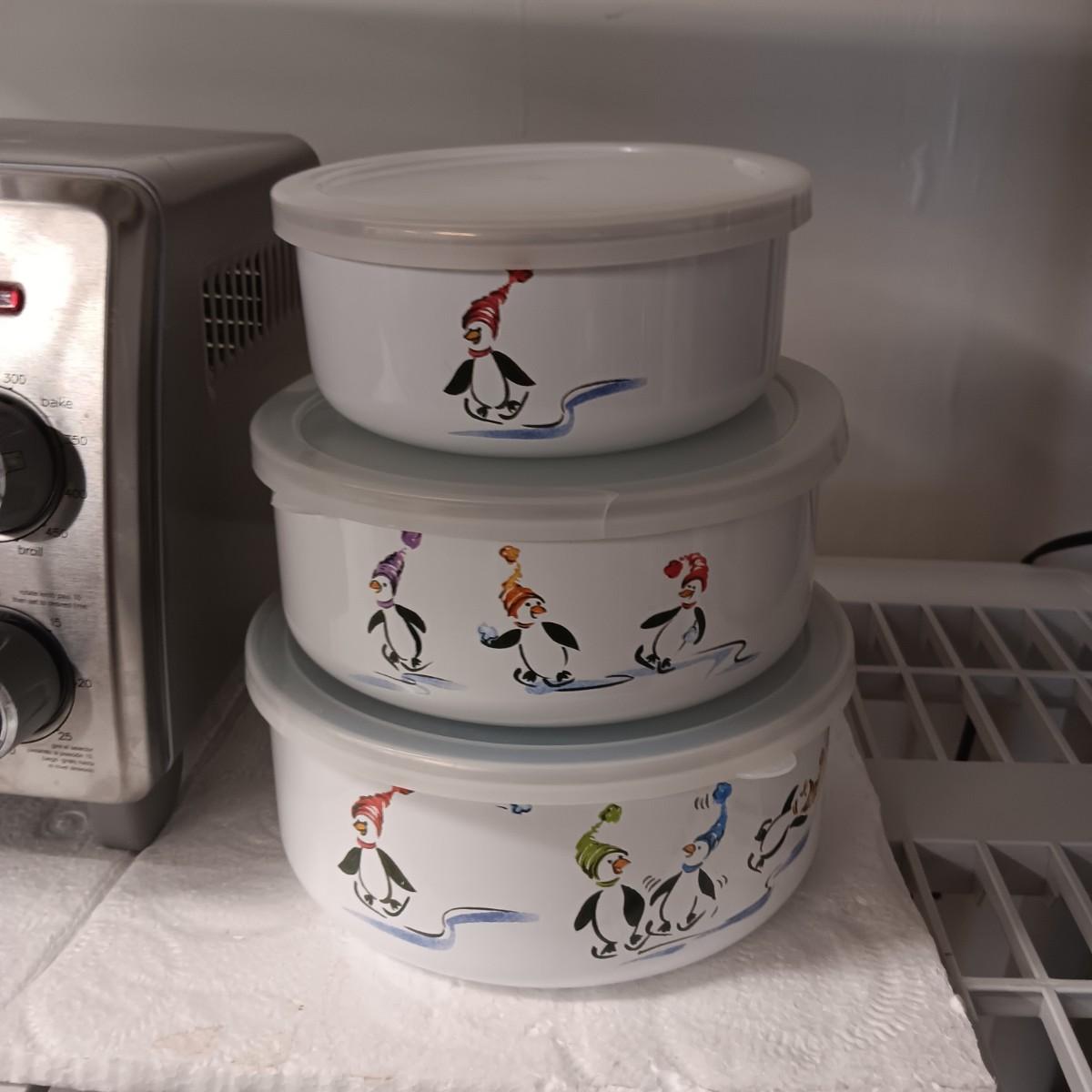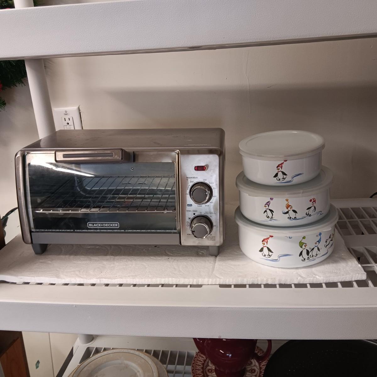 GENTLY USED TOASTER OVEN AND METAL BOWLS WITH LIDS