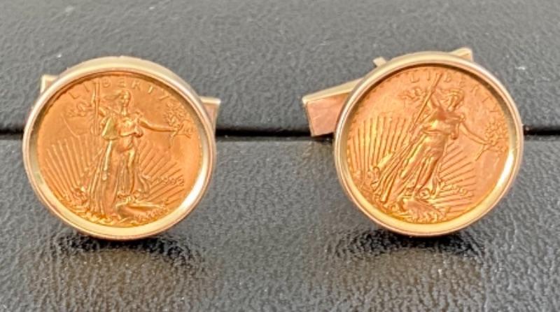 Genuine 22 kt Gold Coin Cufflinks w 14k settings