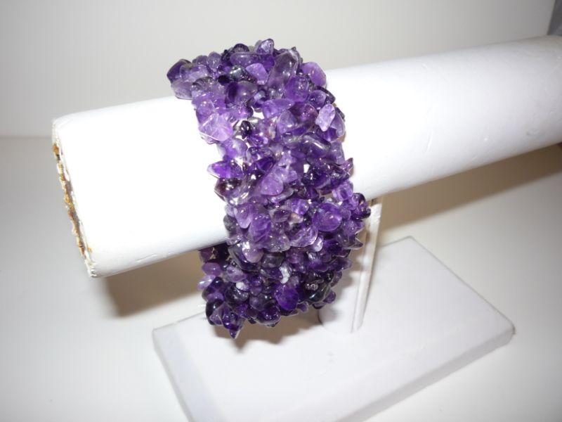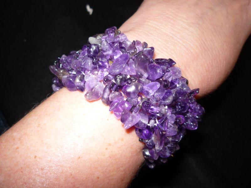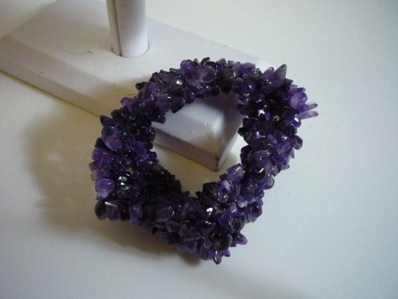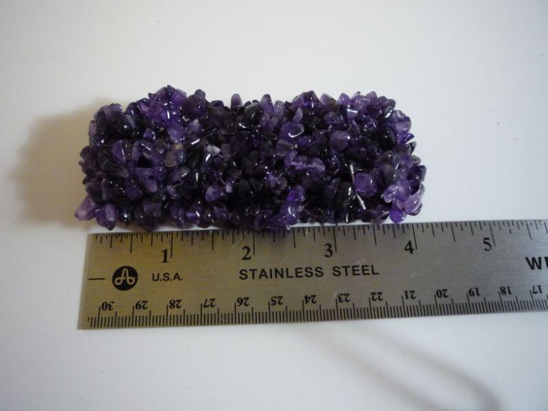 Rich purple amethyst chips strung on elastic stretch bracelet. Took photos with and without flash to capture the deep rich color.