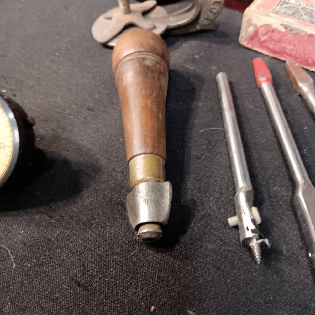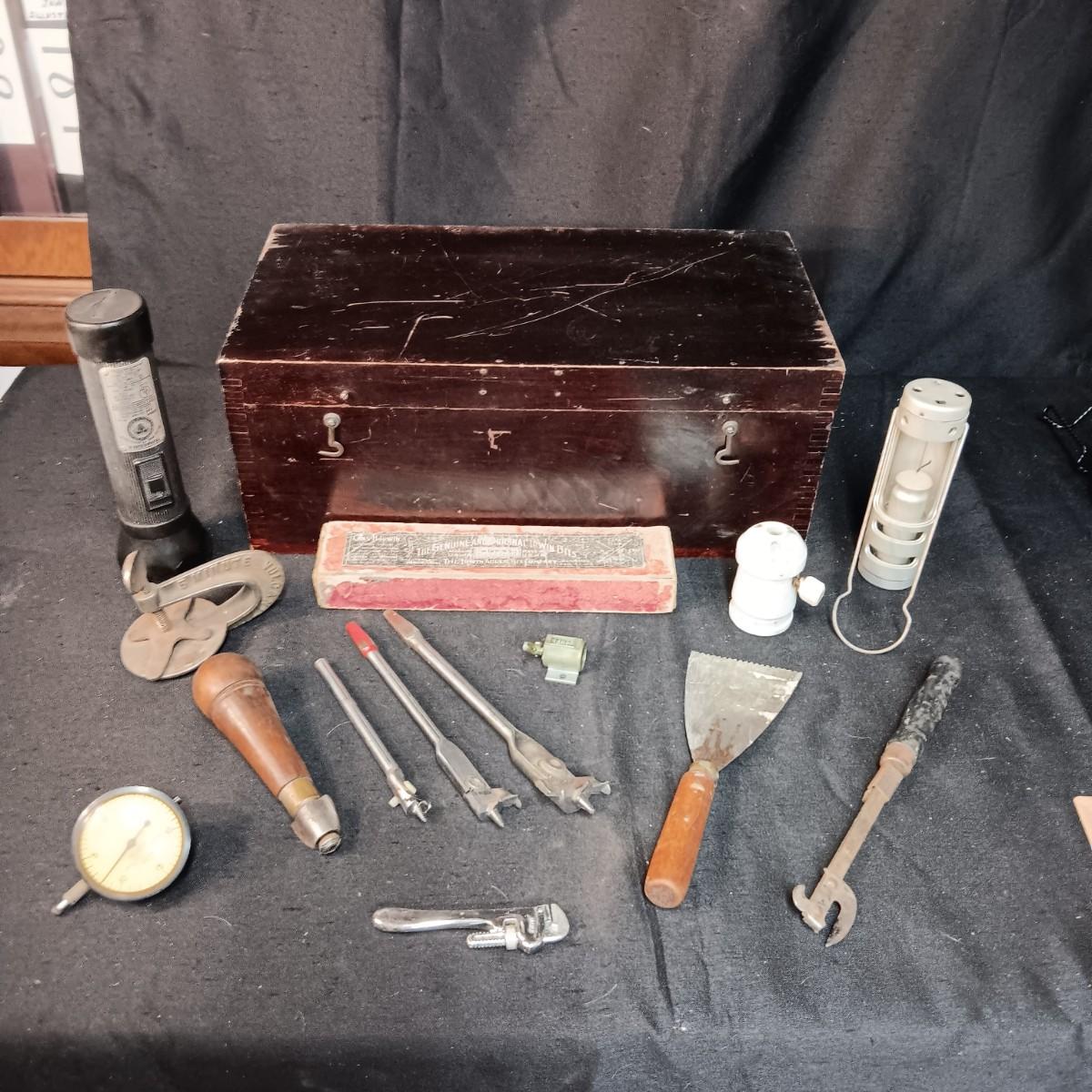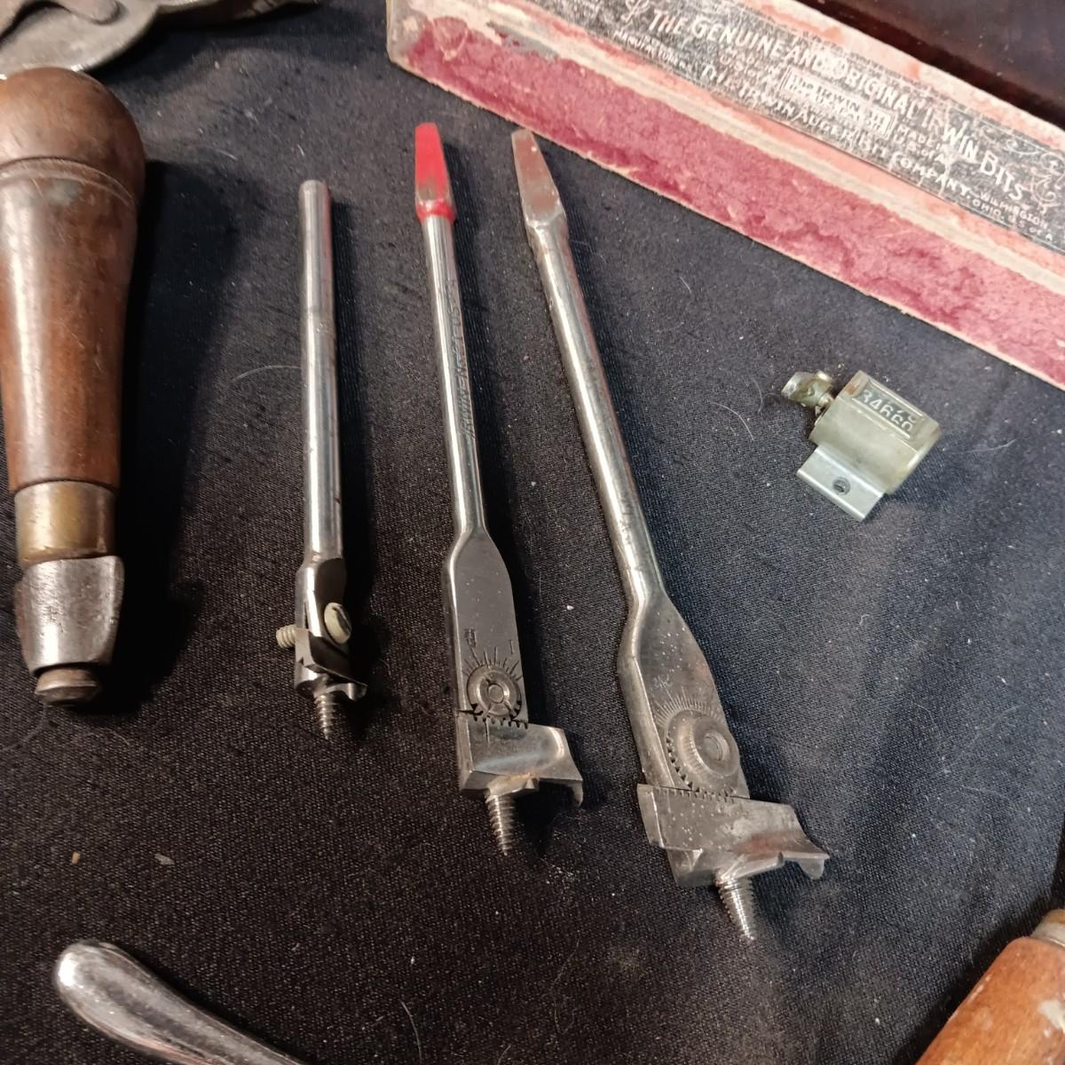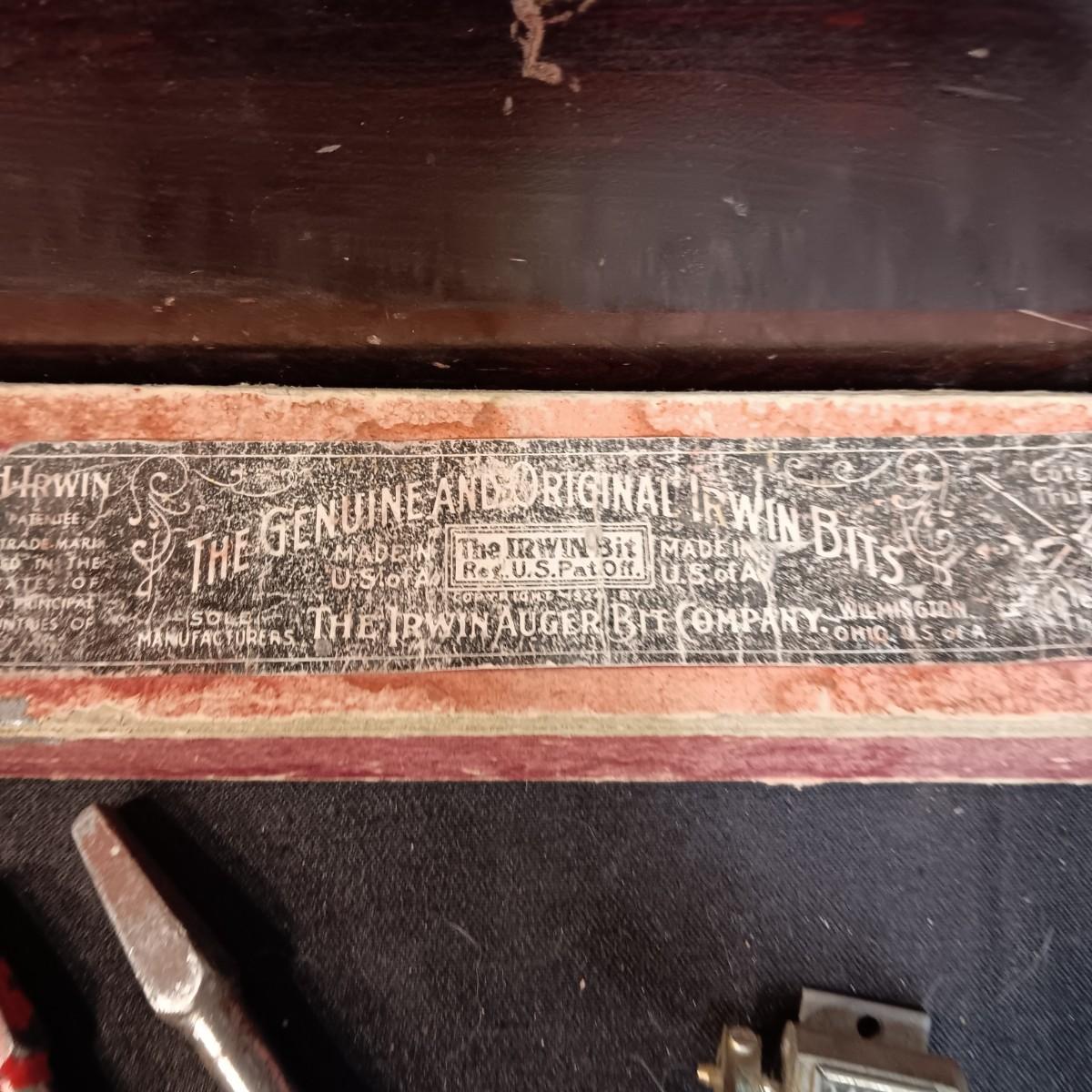 GENUINE AND ORIGINAL IRWIN BITS, WOOD CHEST AND MISC TOOLS