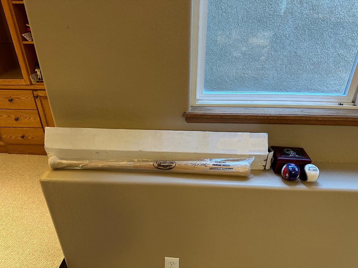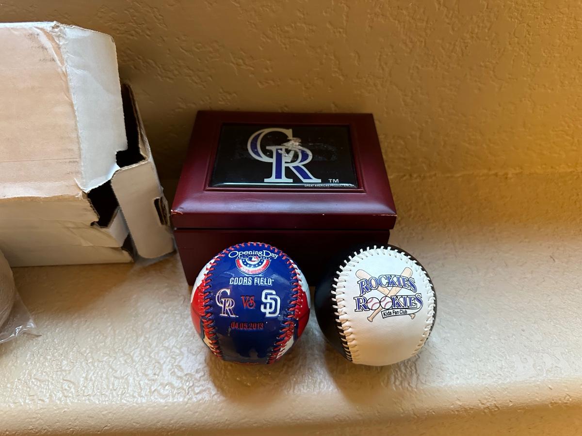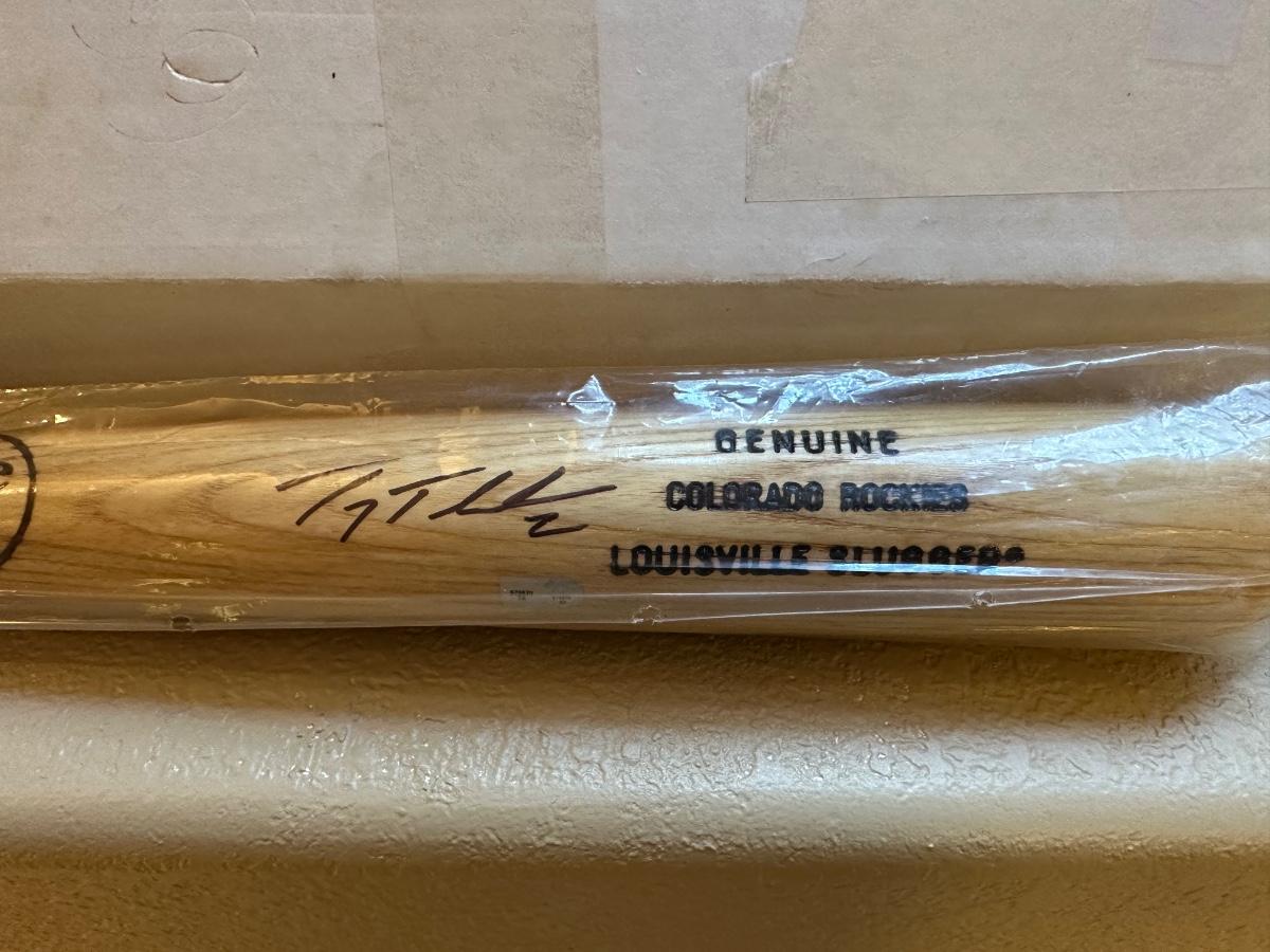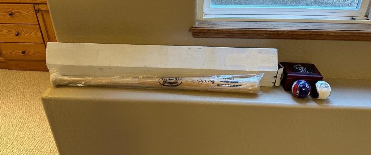GENUINE COLORADO ROCKIES LOUISVILLE SLUGGER BAT AND 2 BALLS