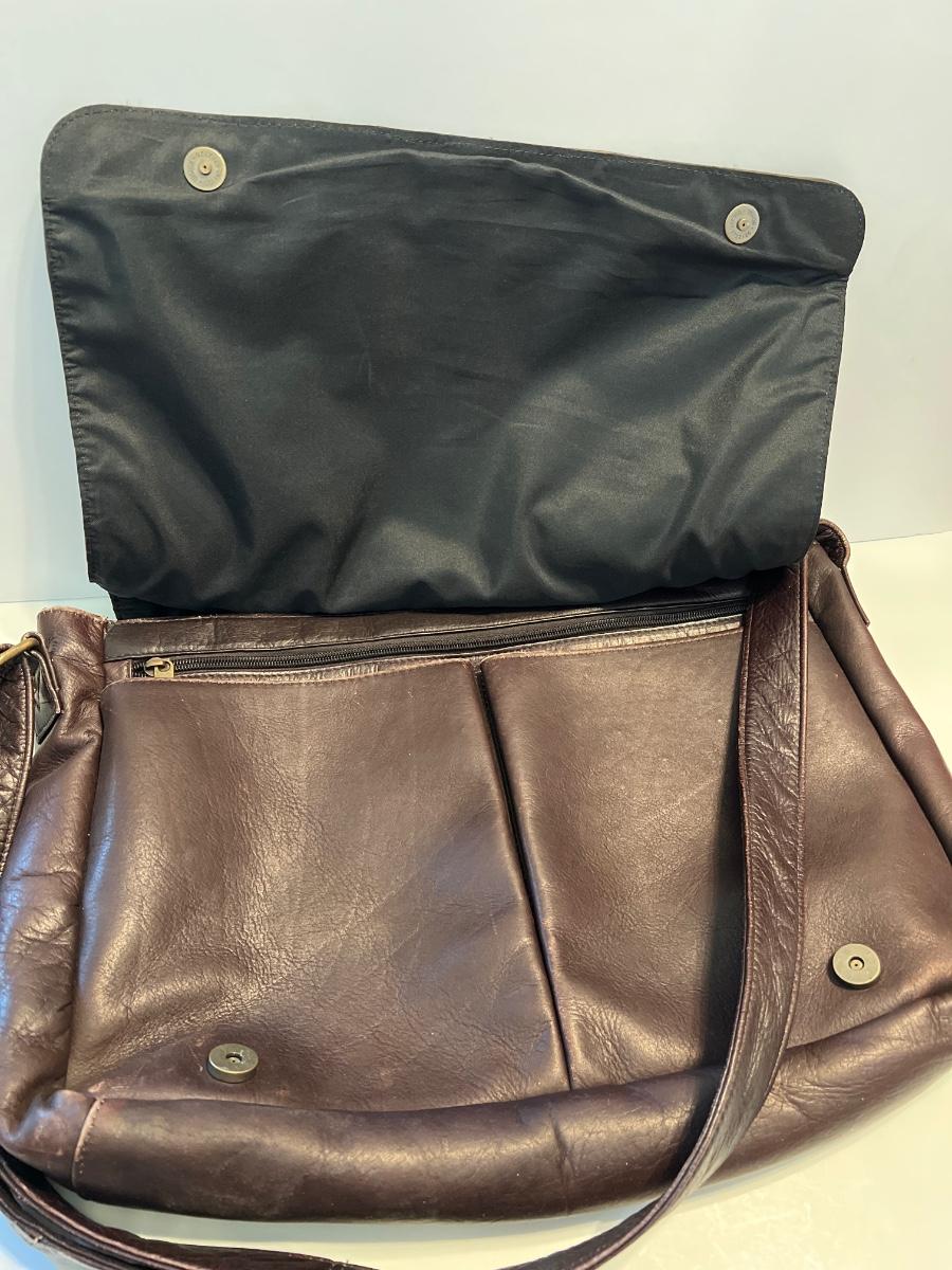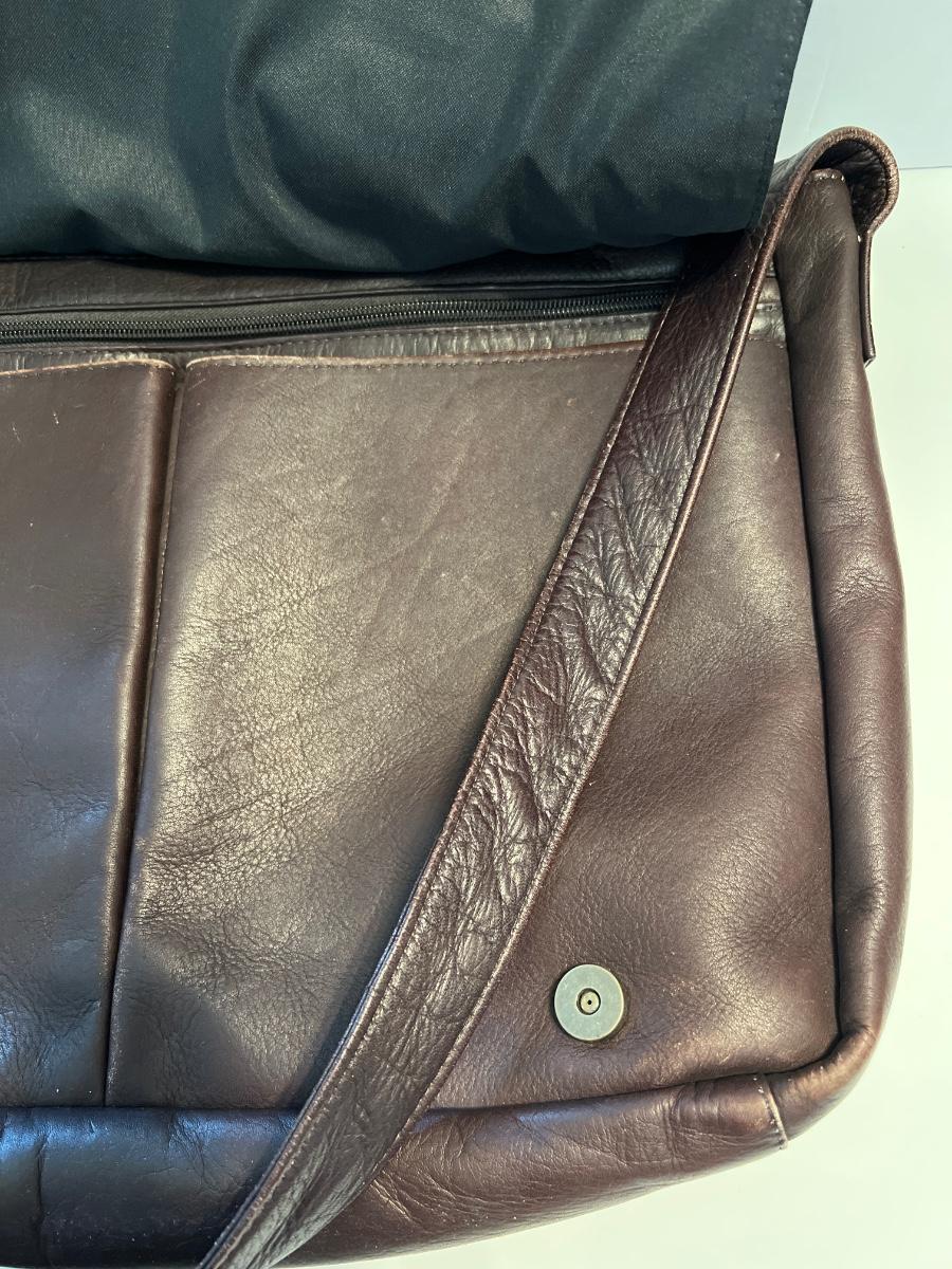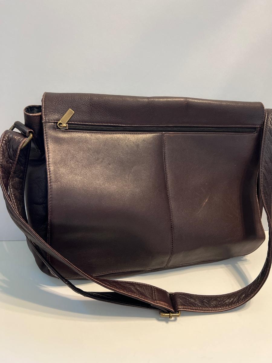 Vintage leather soft leather satchel or briefcase. 17” wide x 13” tall.