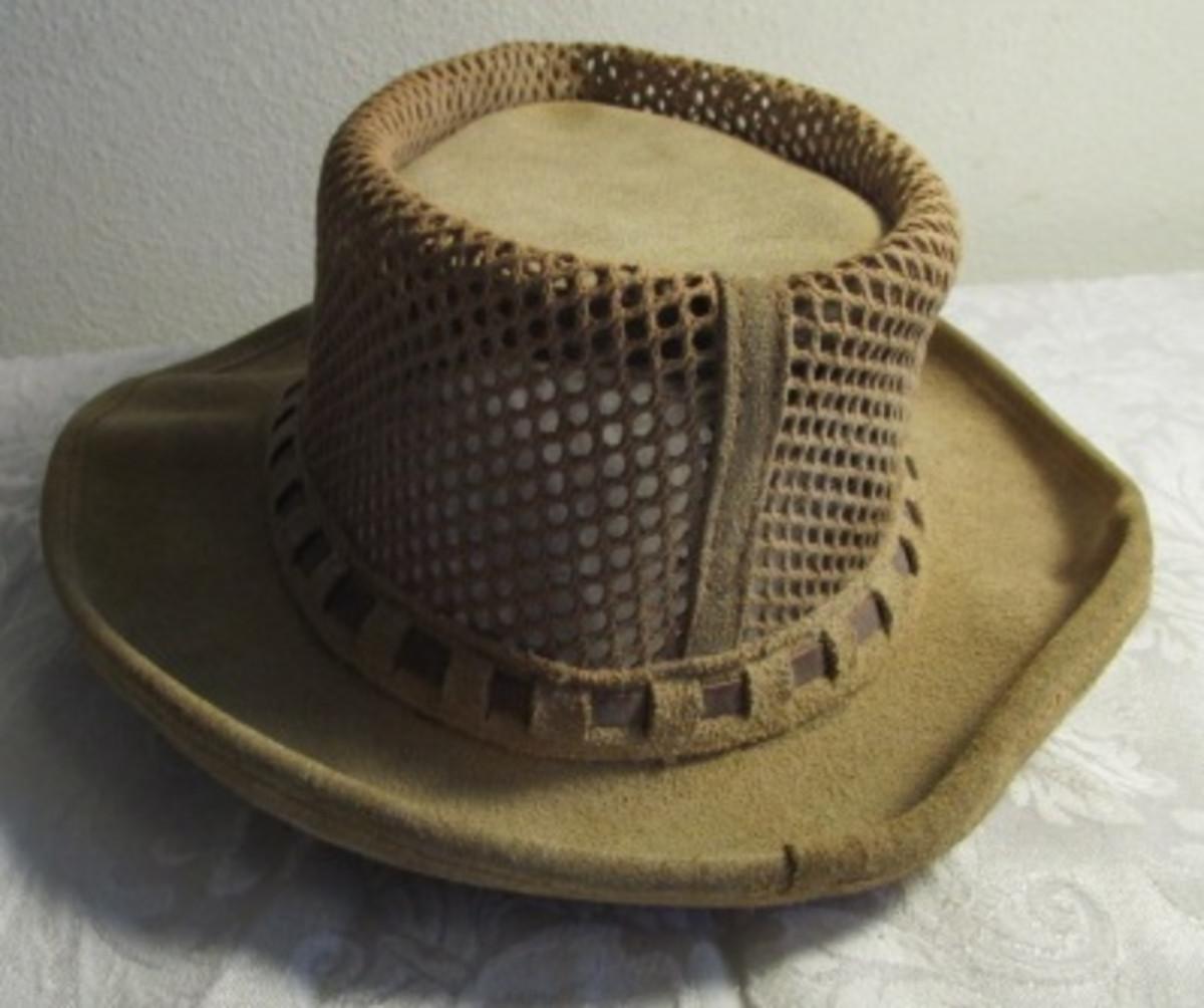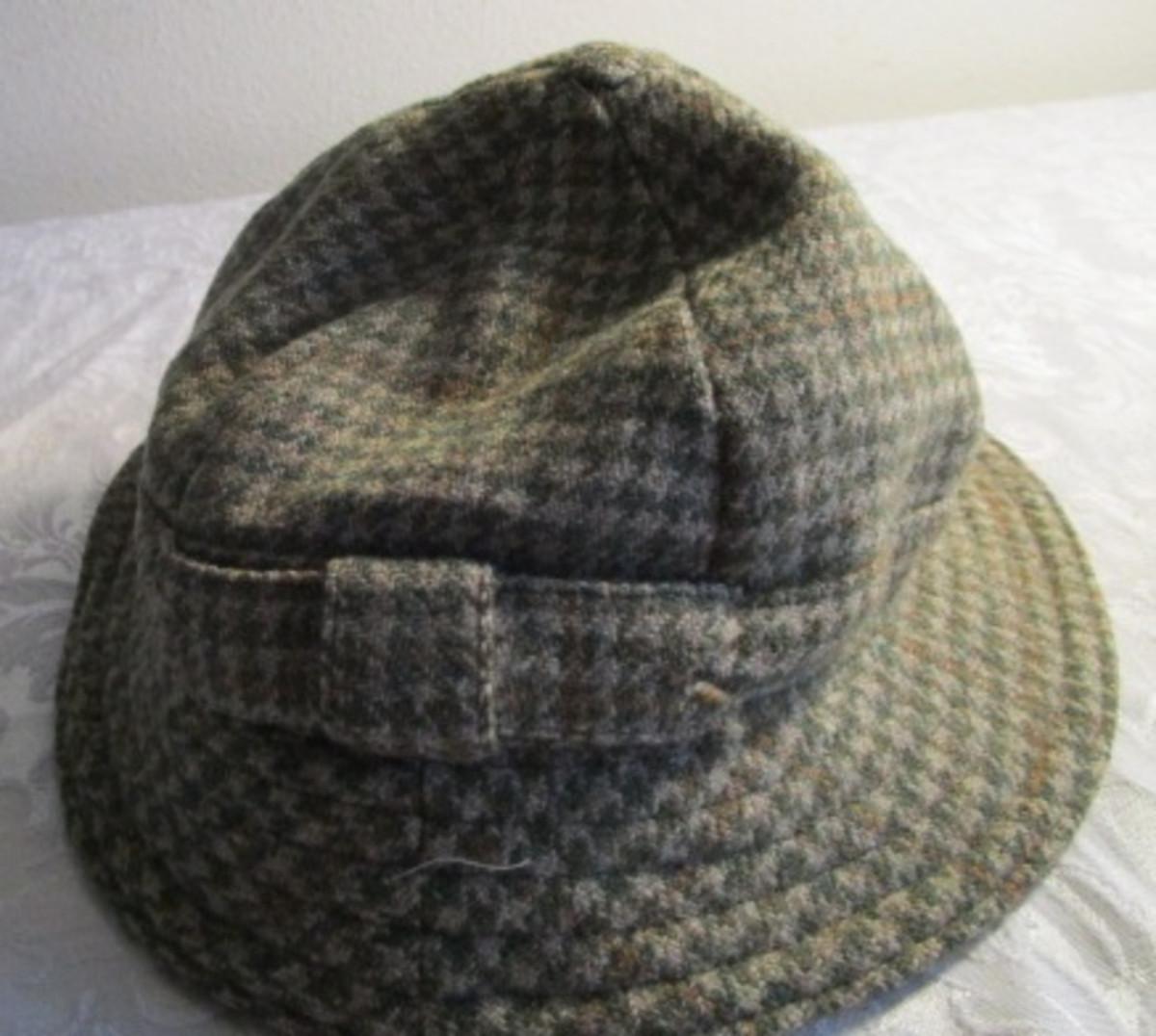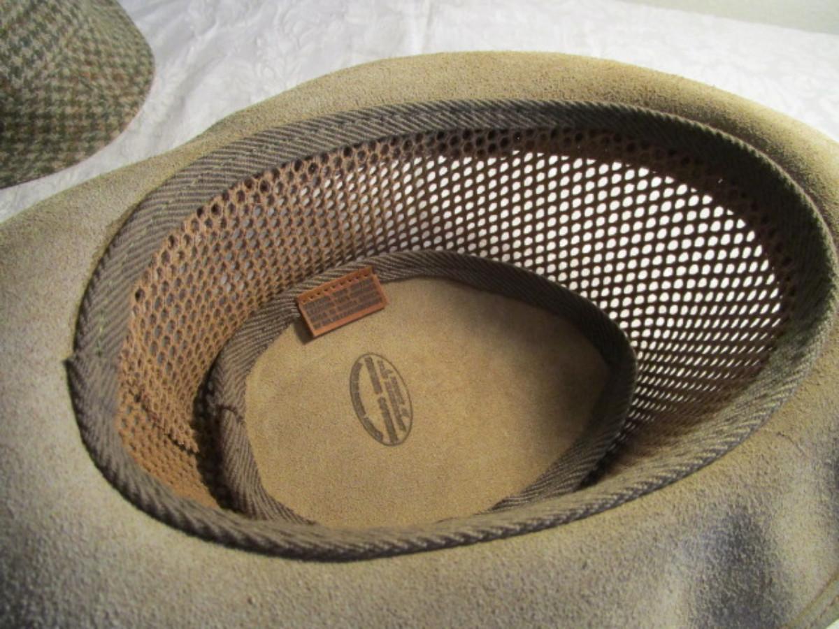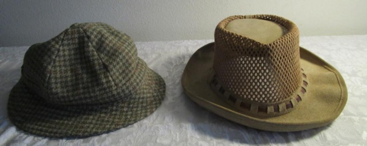 Genuine Cowhide hat estimate size 7-1/4; Deerstalker hat made in Wales pure wool est size 7-1/8).