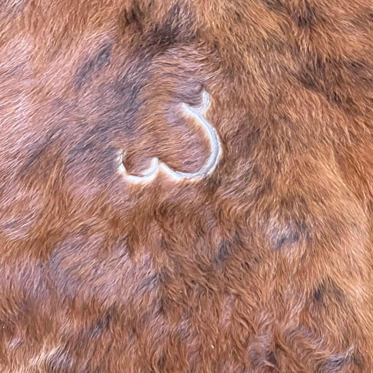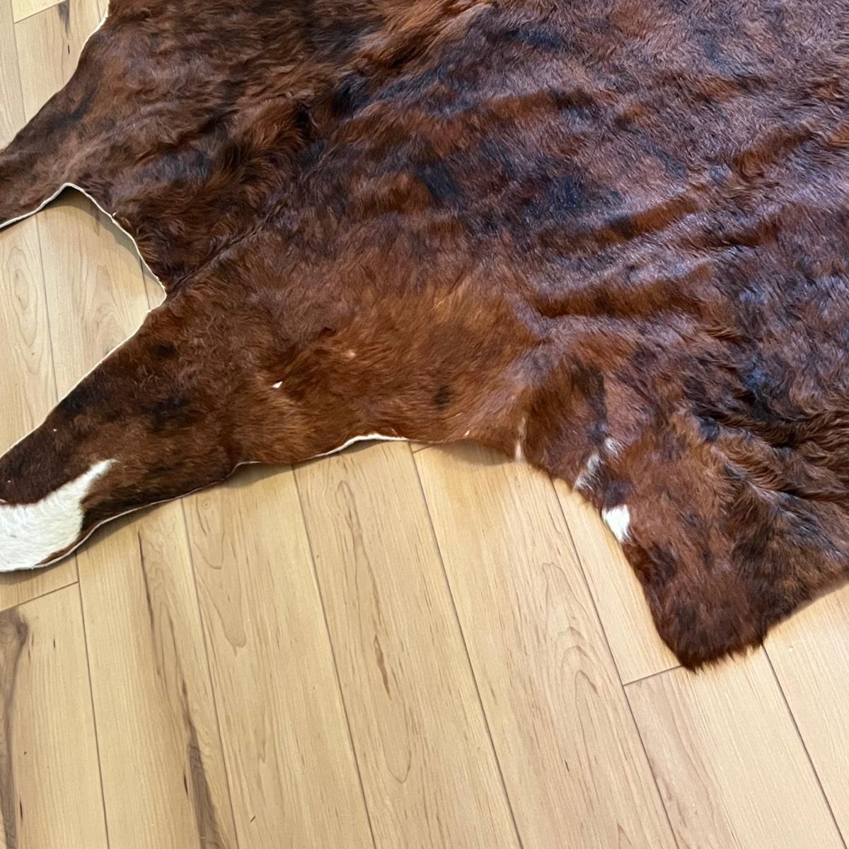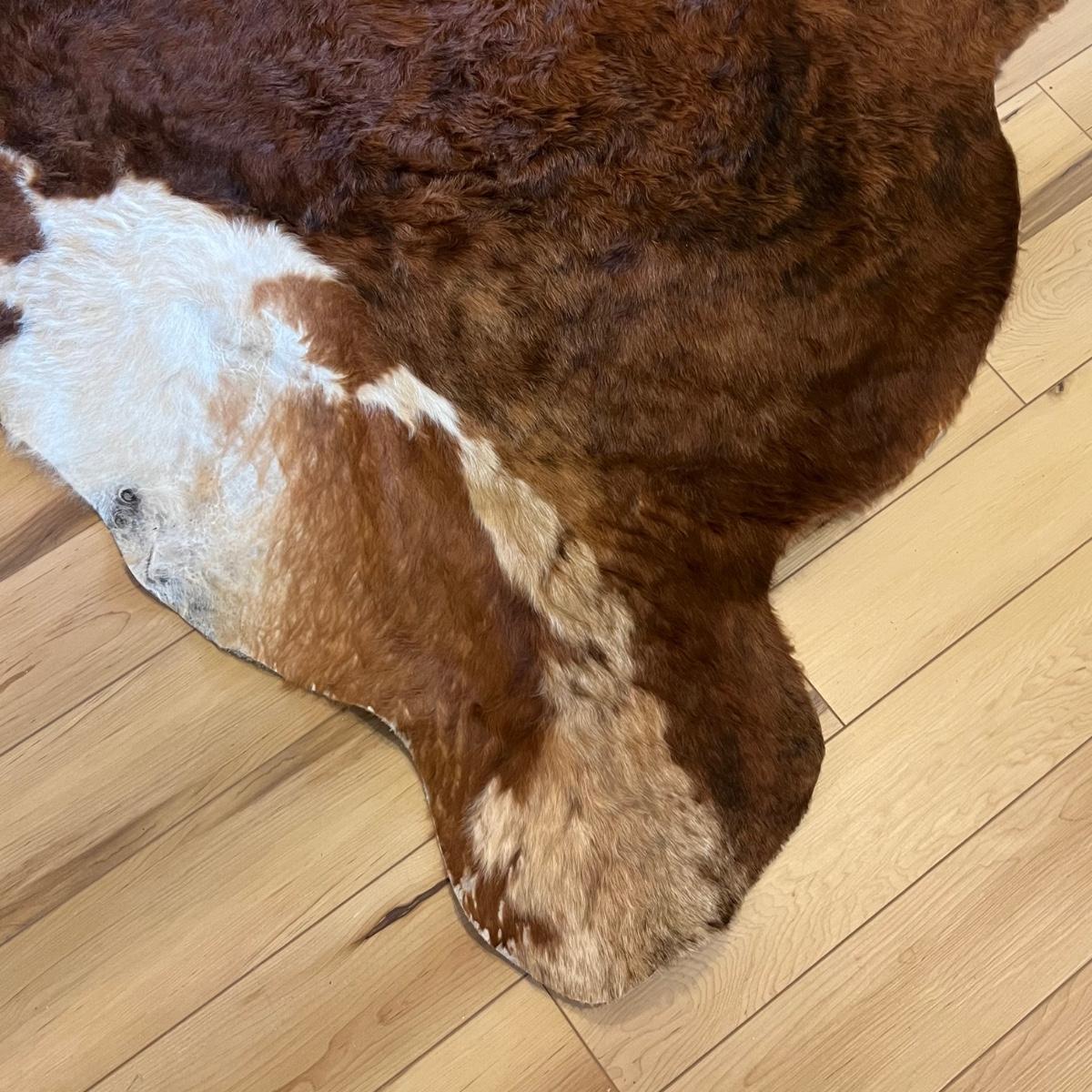 This cowhide measures approximately 7’ x 7’5”. Note that this cow was brand. see images for label.
