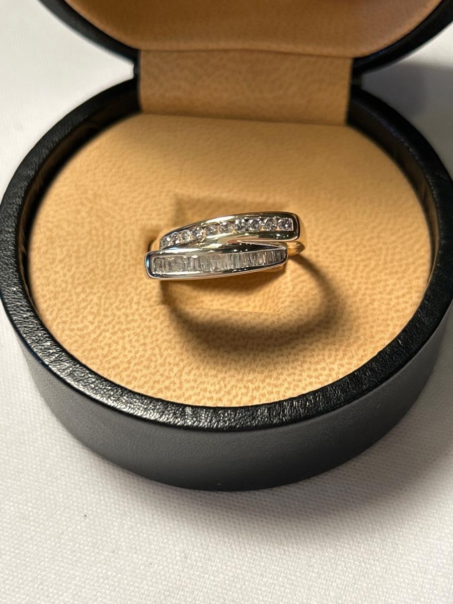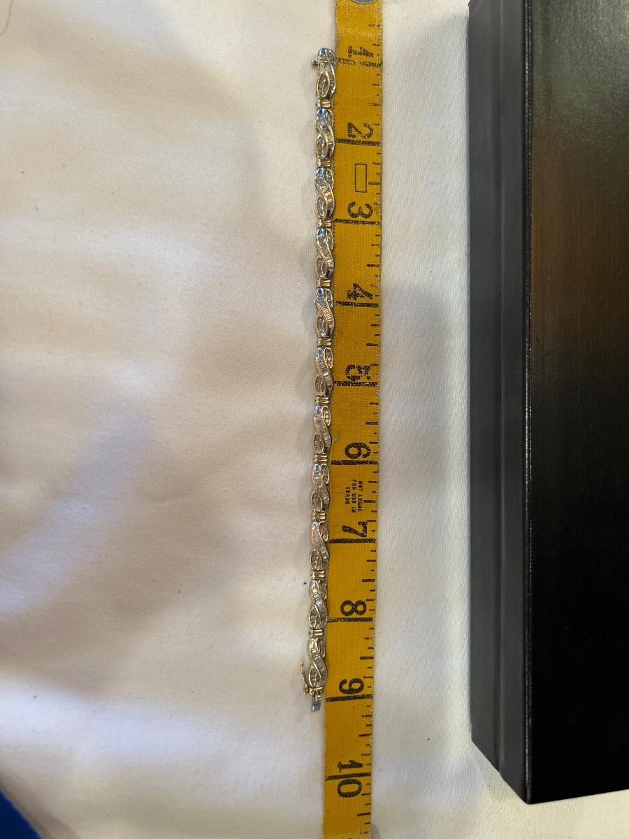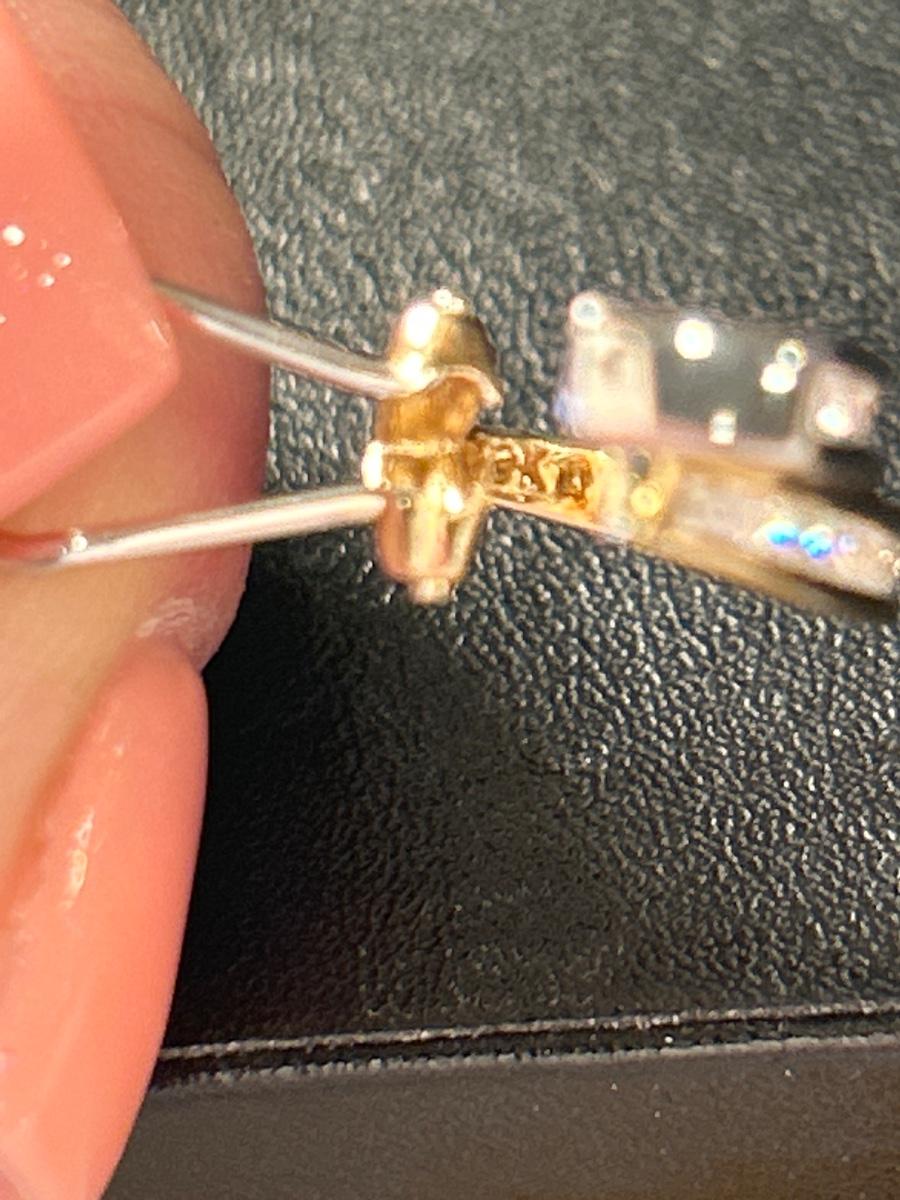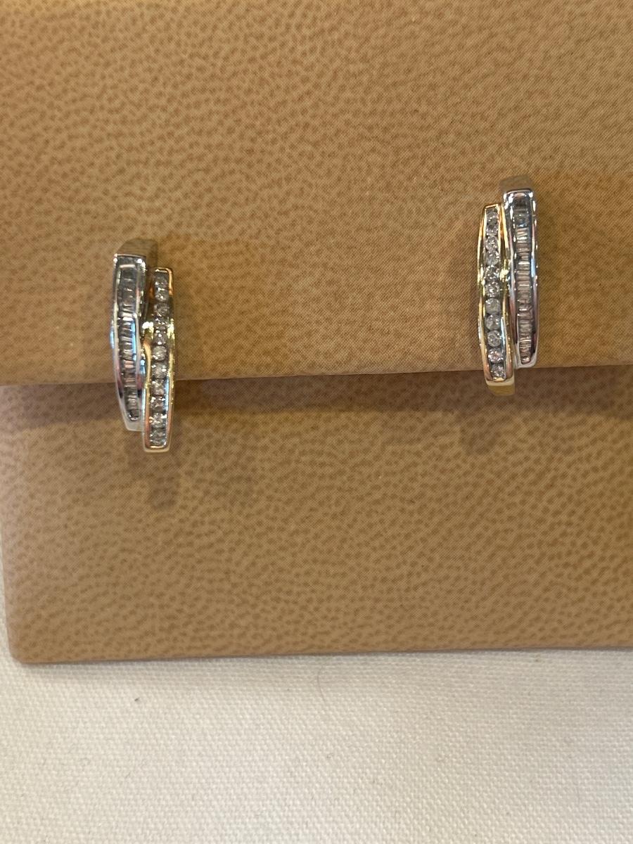 10K white & yellow gold diamond set. The ring is a size 10, the chain on the necklace is a 22 inch & the earrings are clip on. Boxes are not included