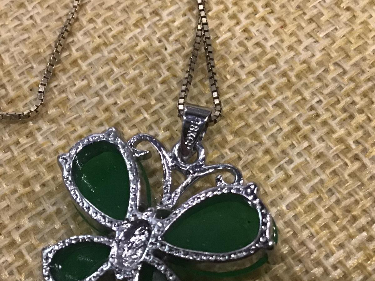 Genuine Green Jade 18KGP Crystal Butterfly Pendantsnd 925 Silver Chain Necklace