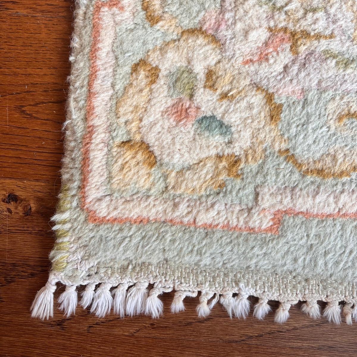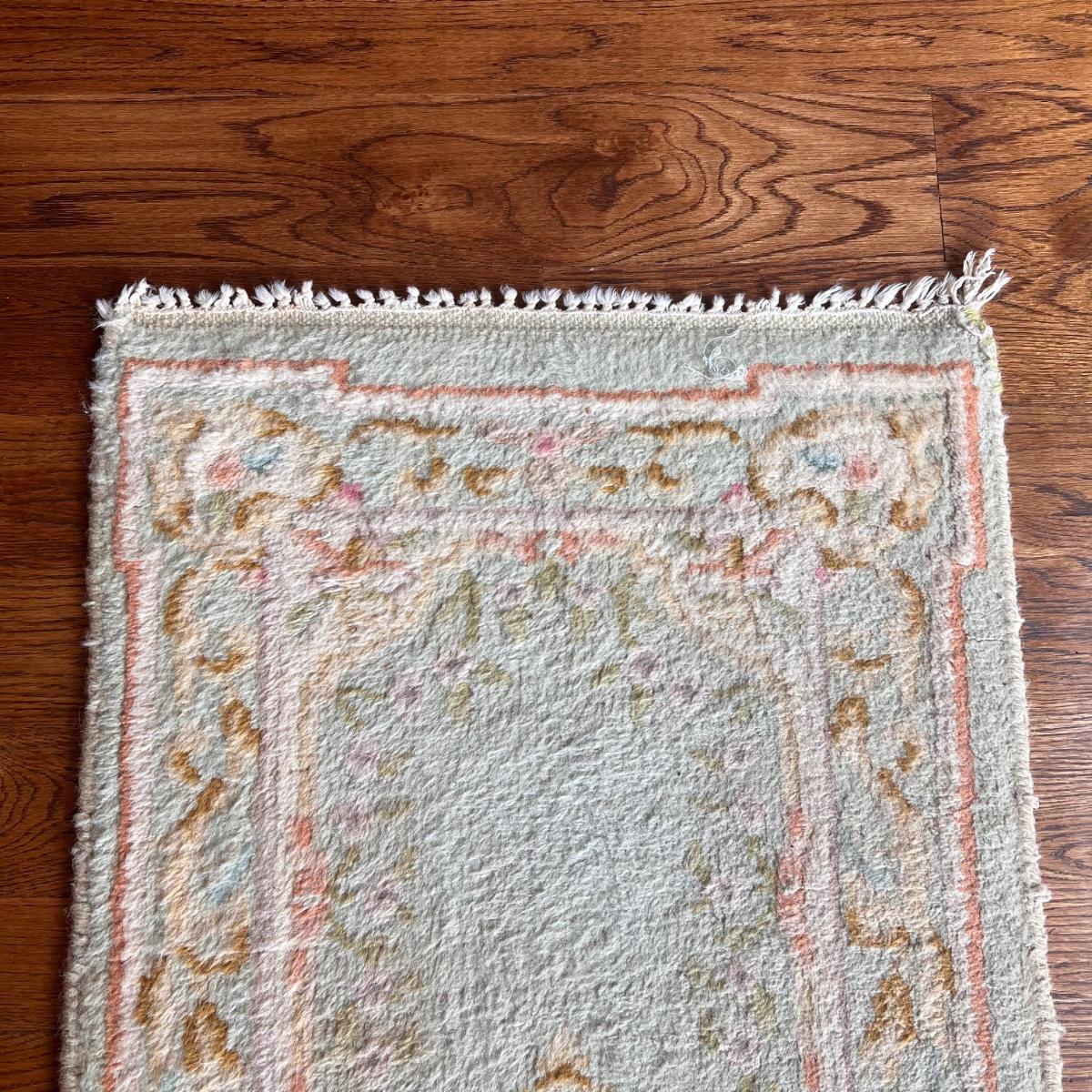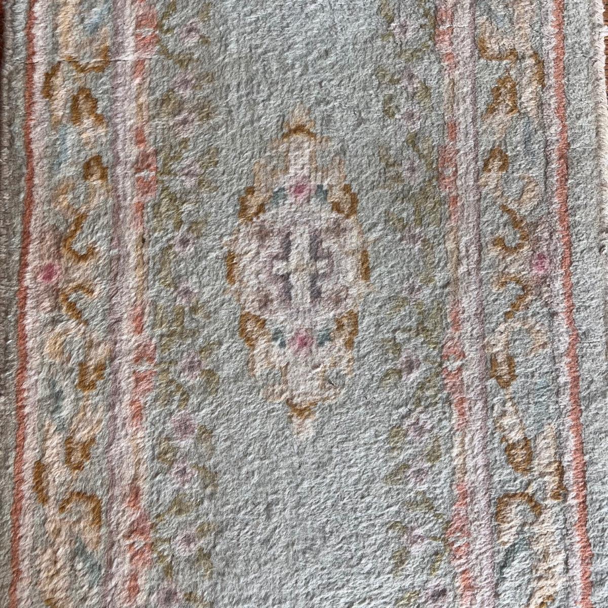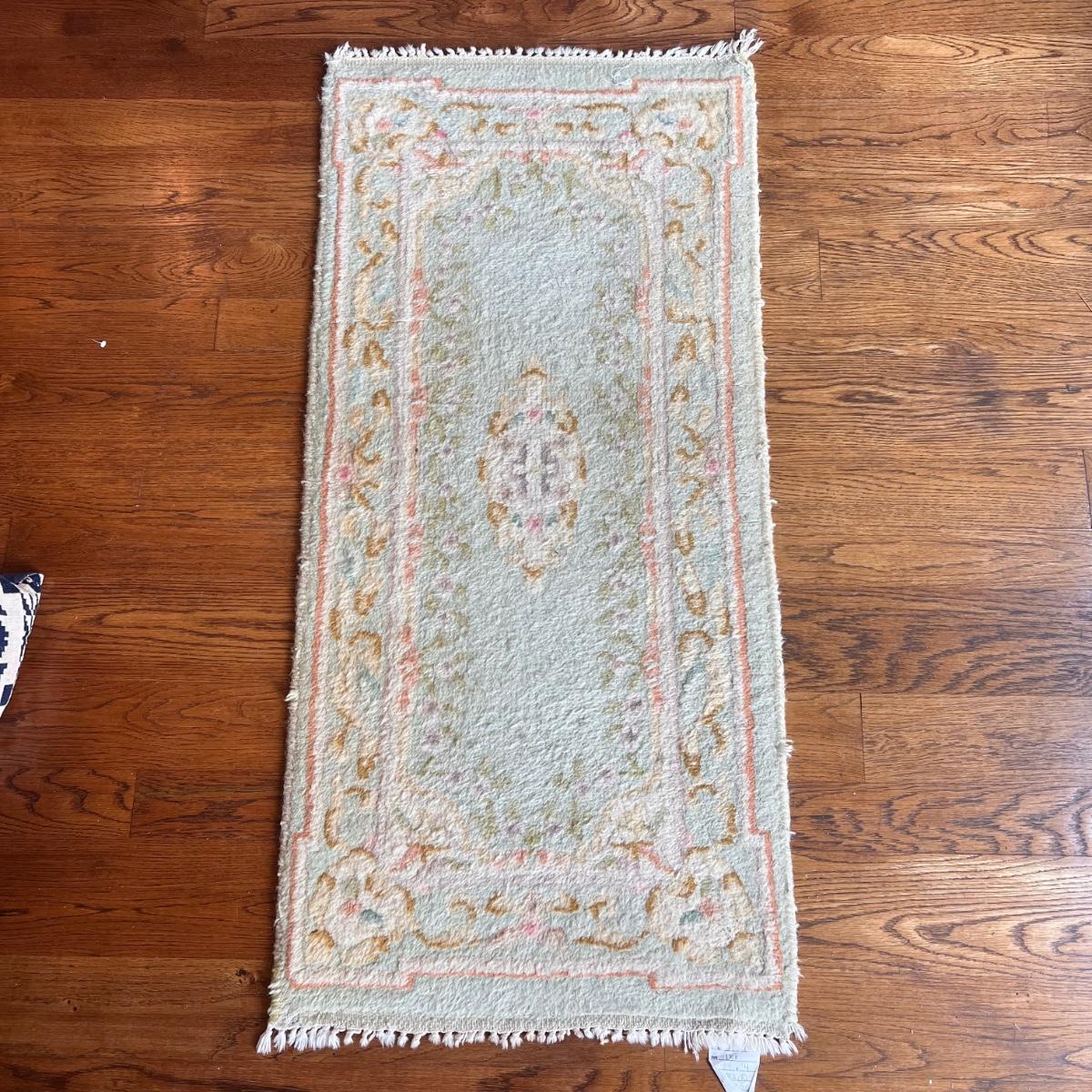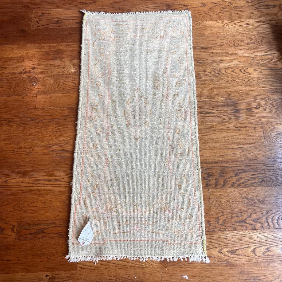 This lot includes one rug that measures 50” x 22.5”H. According to its tags, it appears to be a genuine hand woven oriental rug. With a light cleaning, you can restore it back to its prime days. Shipping available.