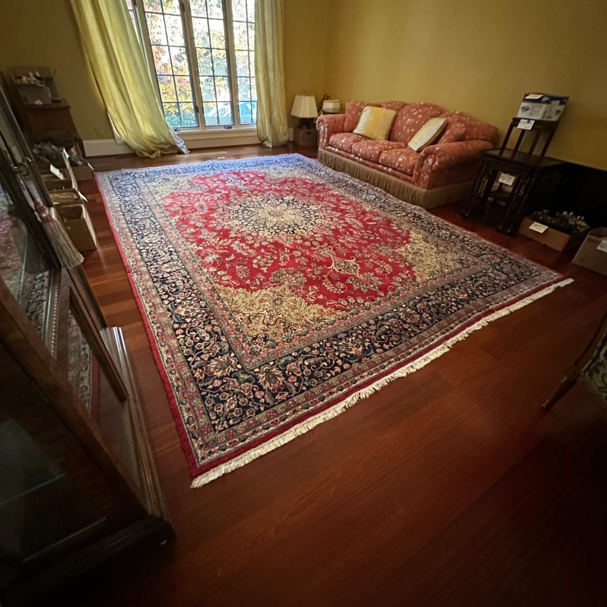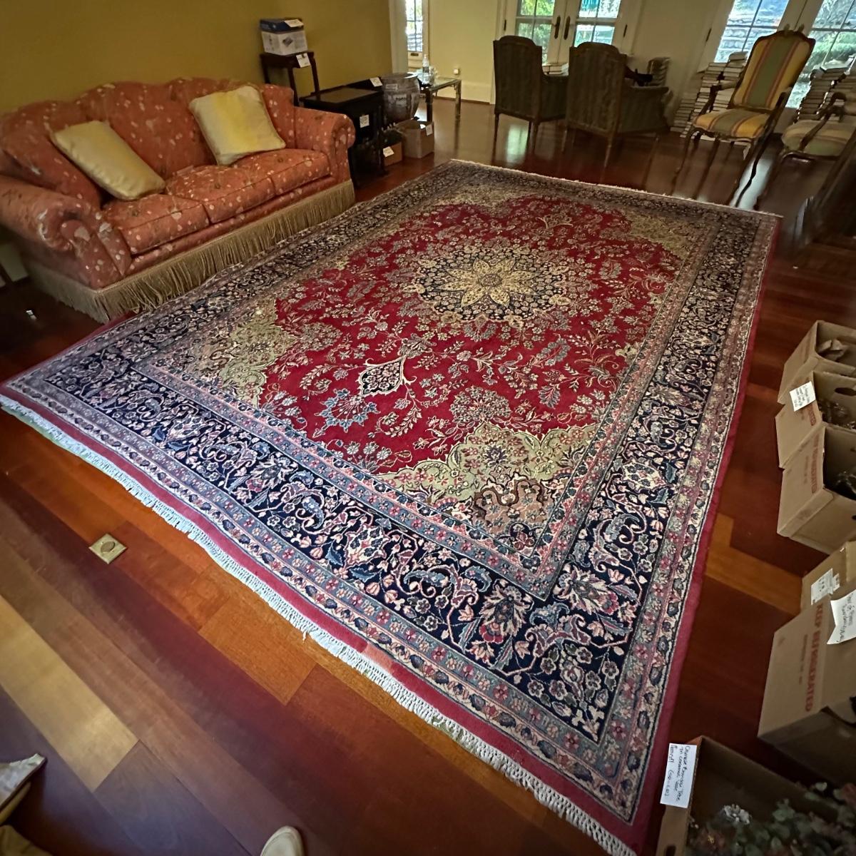 Genuine handwoven oriental rug measures 13’9” x 9’8”. Local pickup only.