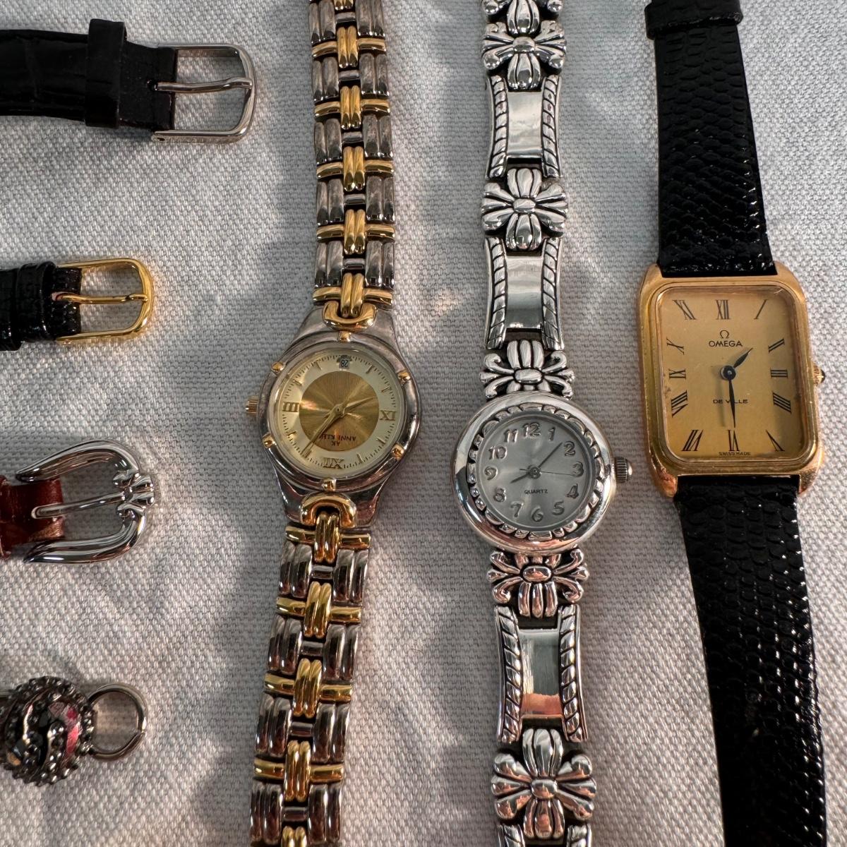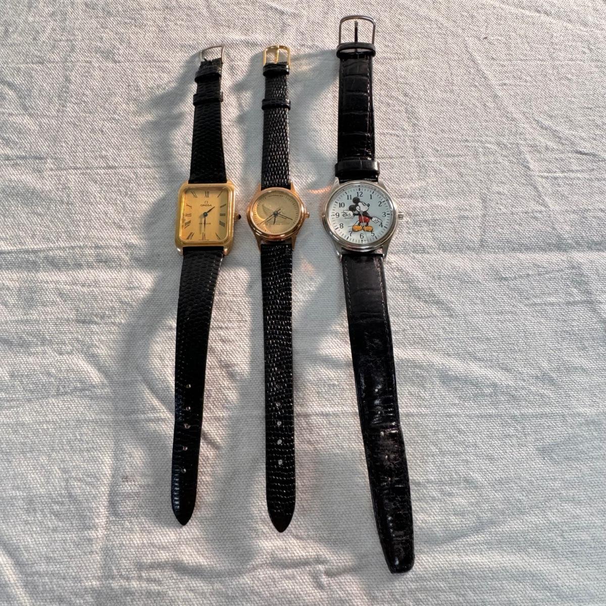 This lot includes ten watches. The Mickey Mouse and Wittnauer watches are made with genuine leather straps. The Omega watch’s straps are made with 5/8 R Calfskin. All but the Omega, Hamilton, and Wittnauer watches are made with stainless steel. The largest watch is the Mickey Mouse watch that is 9” all around. None of the watches appear to be working, it’s likely most only need new batteries.
