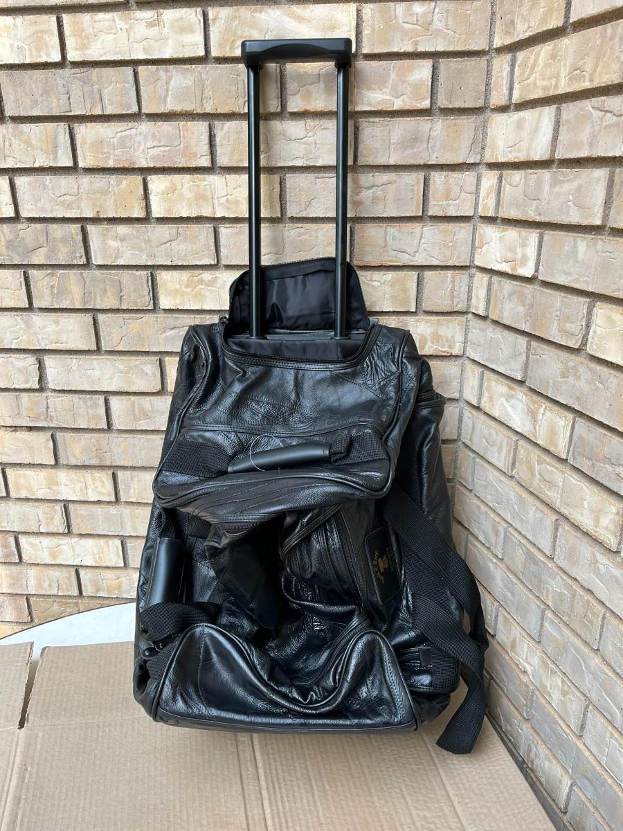 Genuine Leather Carrying Case on Wheels with Handle. Like Knew