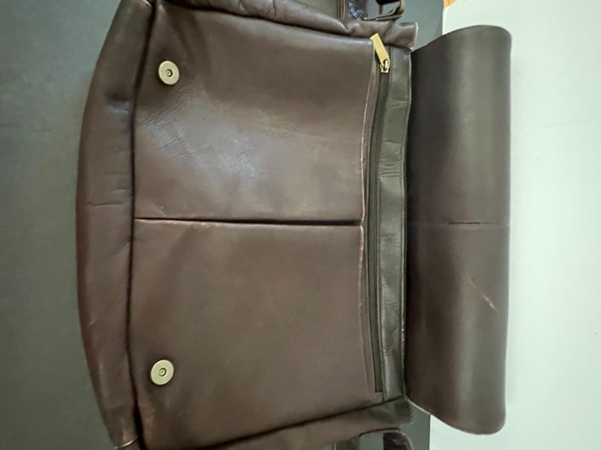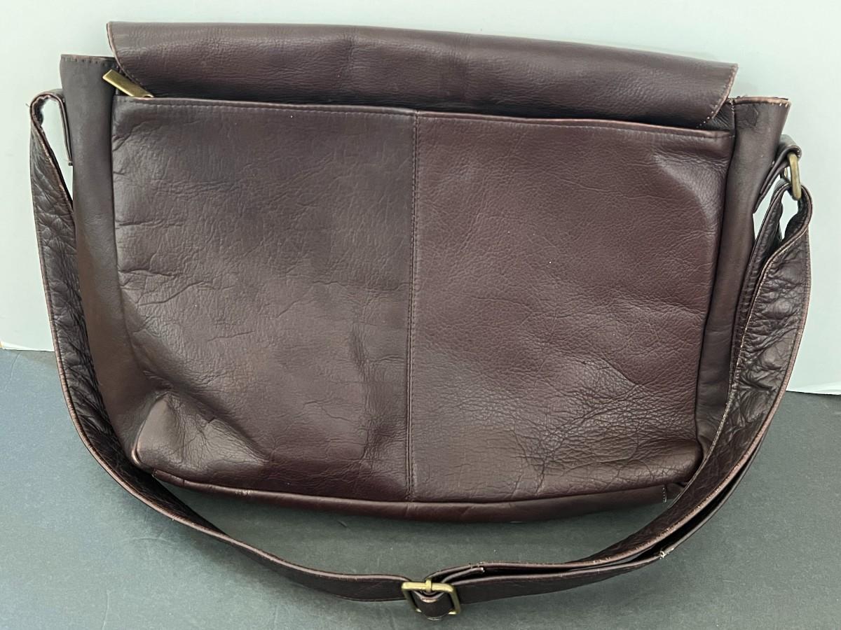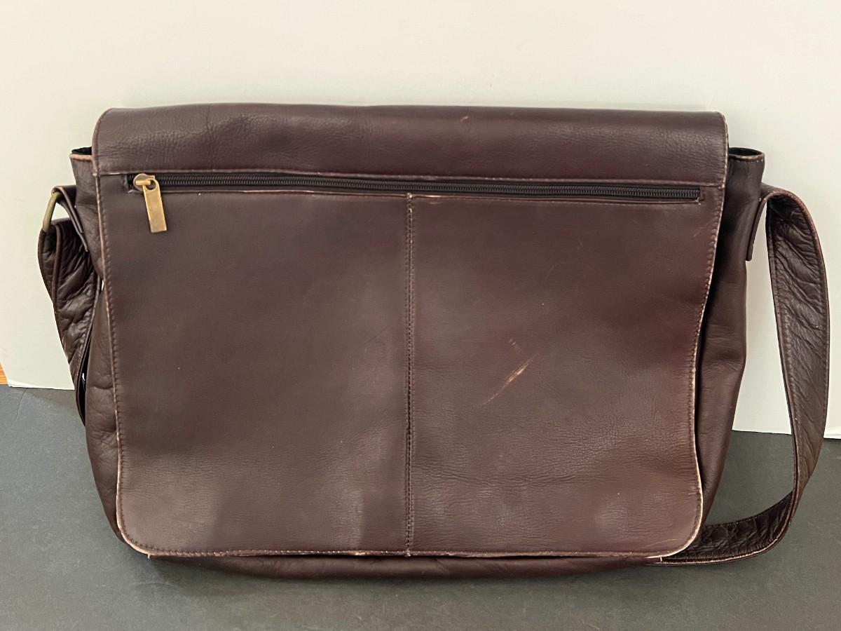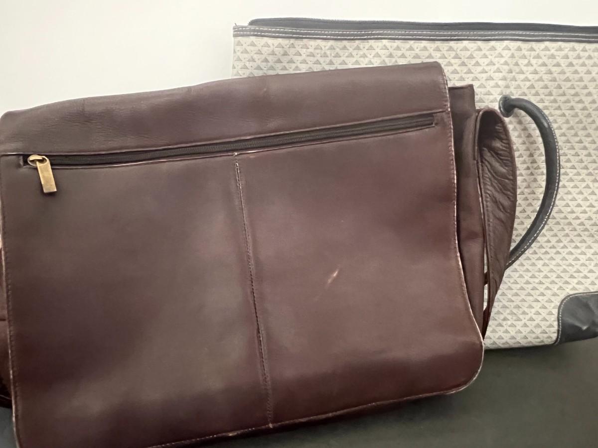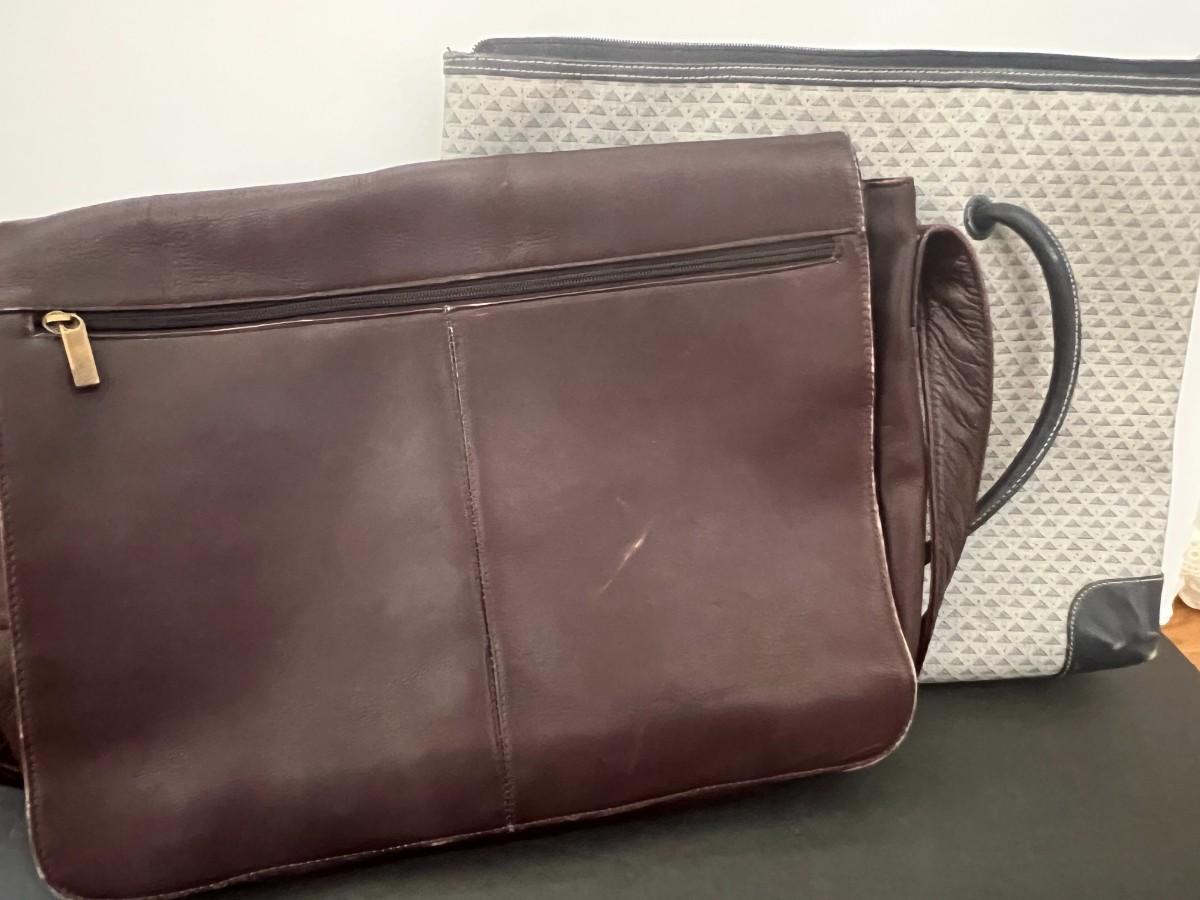 Two bags: genuine vintage leather satchel or portfolio bag (18" wide x 13" tall) that is made in Columbia; laptop bag (17" wide x 13" tall) from Liz Clairborne. Zip closures. Original hardware and handles.