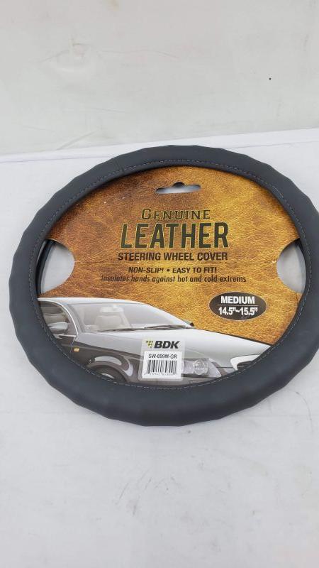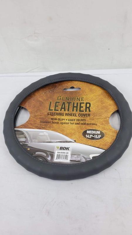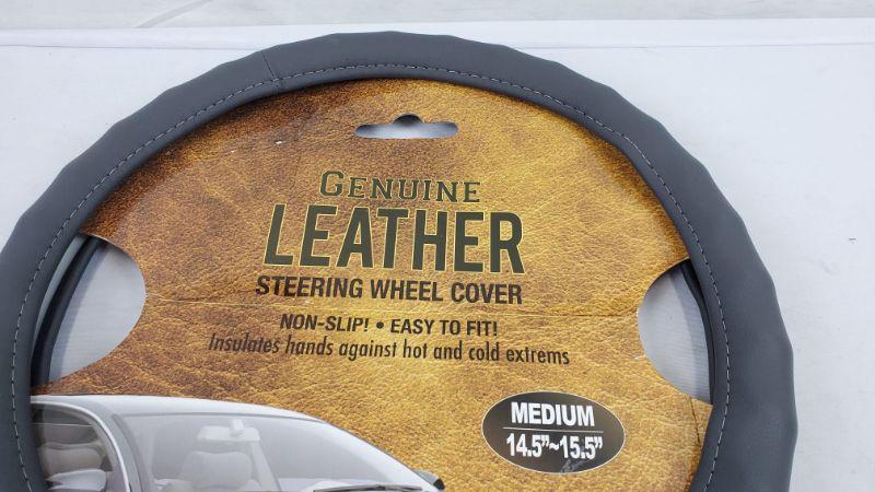 Genuine Leather Steering Wheel Cover, Medium 14.5" - 15.5", Non-Slip - New