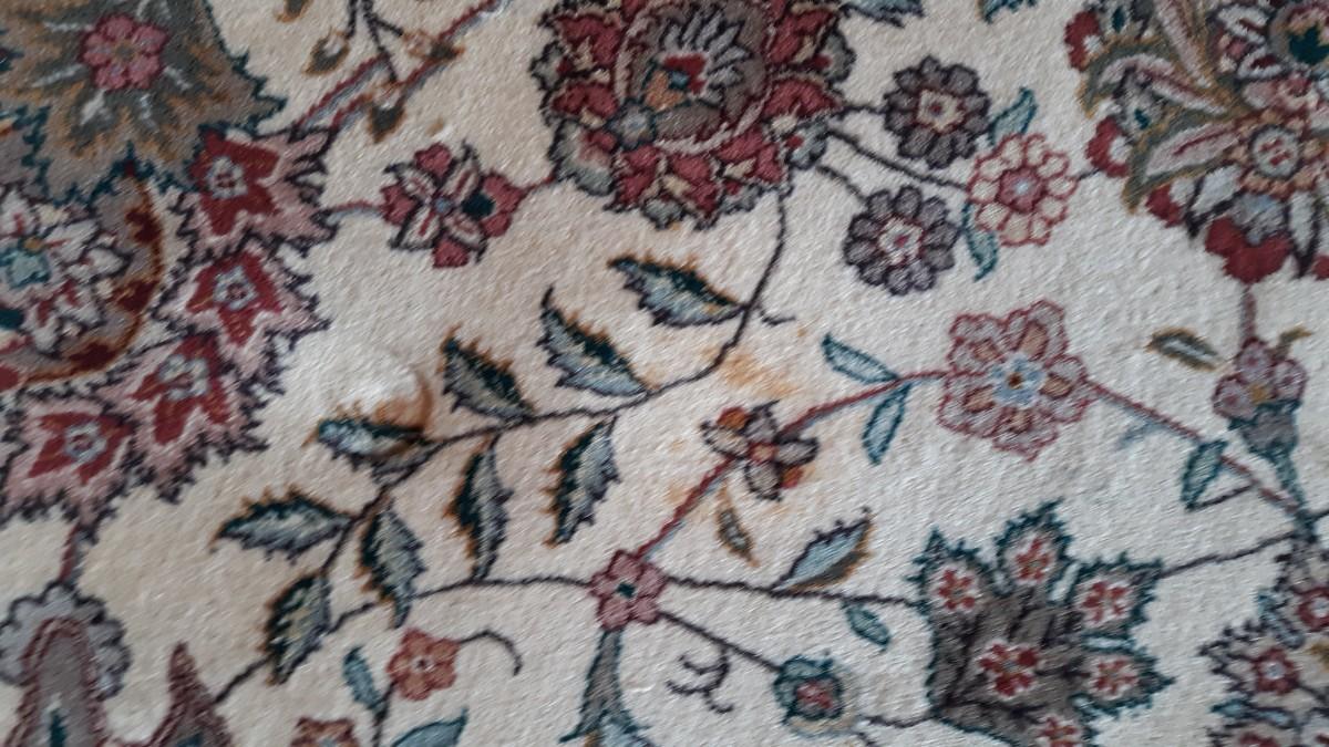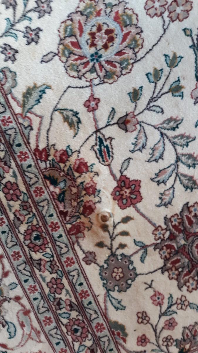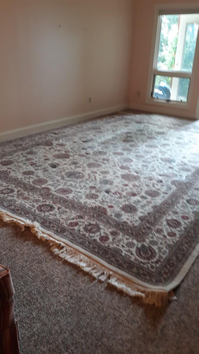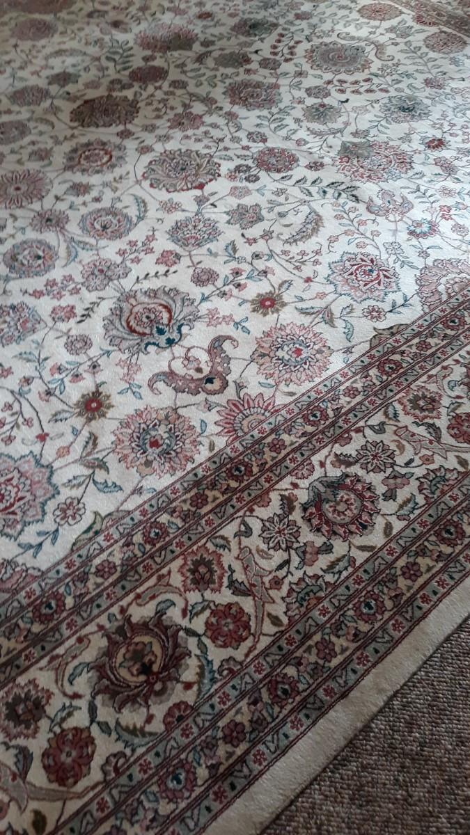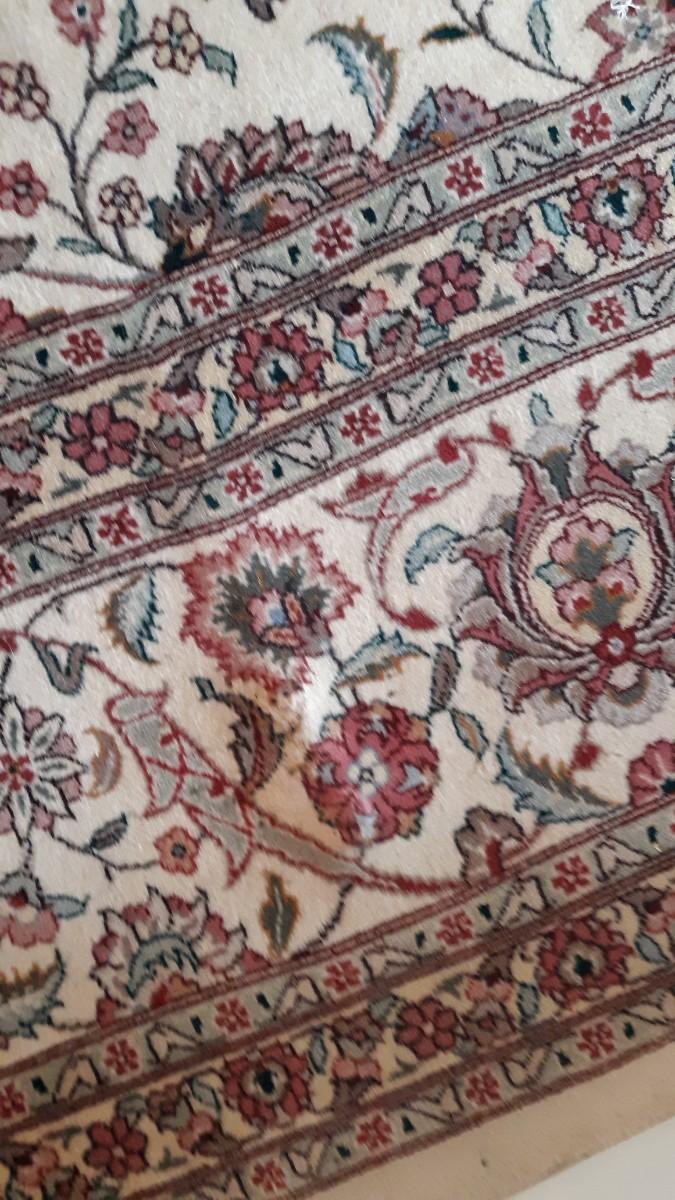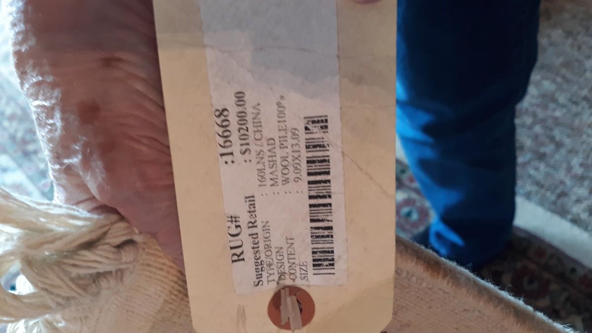 Beautiful 100% Wool Rug. Hand made in China, Size - 9.09 x 13.09 - Mashad. Nice rug retailed for $10,200. In excellent condition. Look at the pictures. There are a few indents where furniture was set on the rug. I saw one or two small stains. Not very noticeable. An amazing rug.