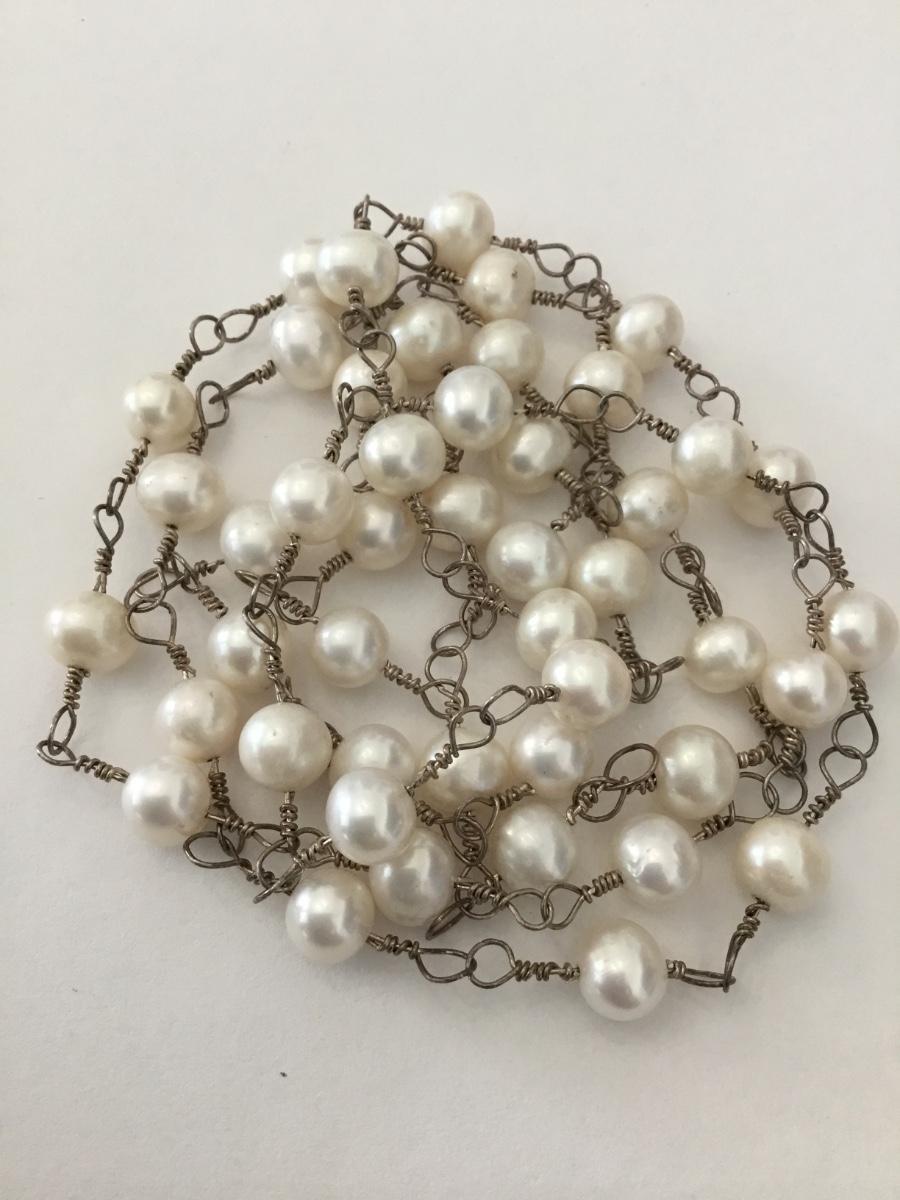 Genuine pearls vintage, silver necklace