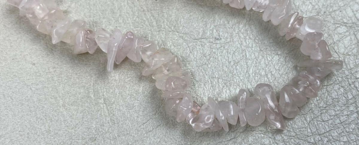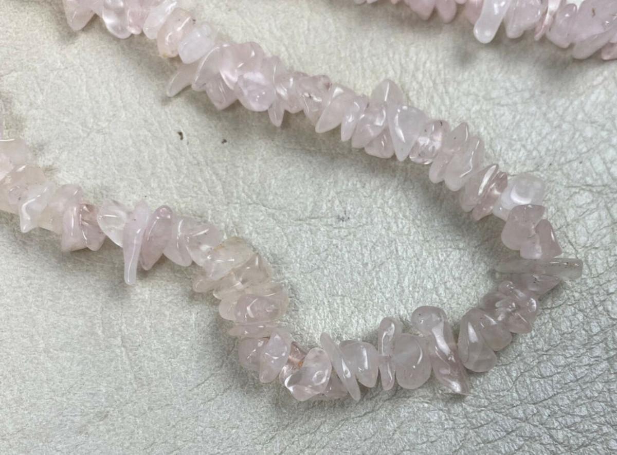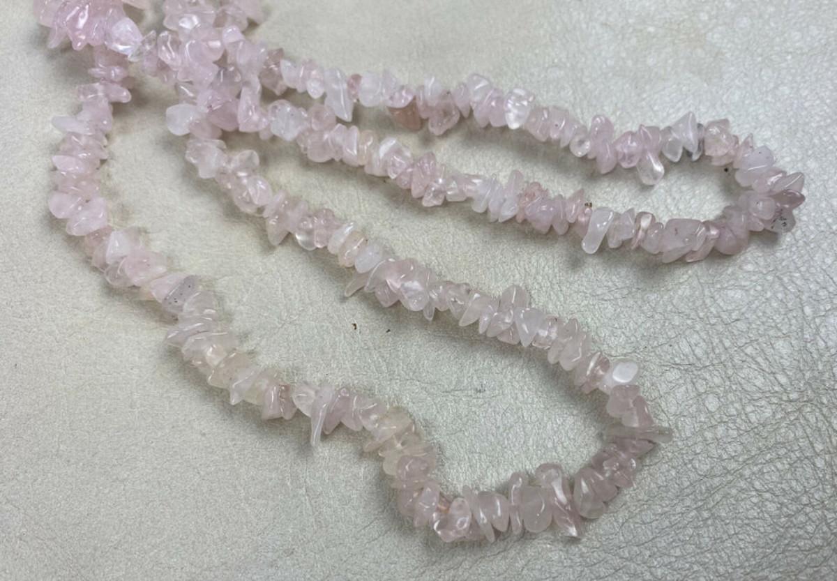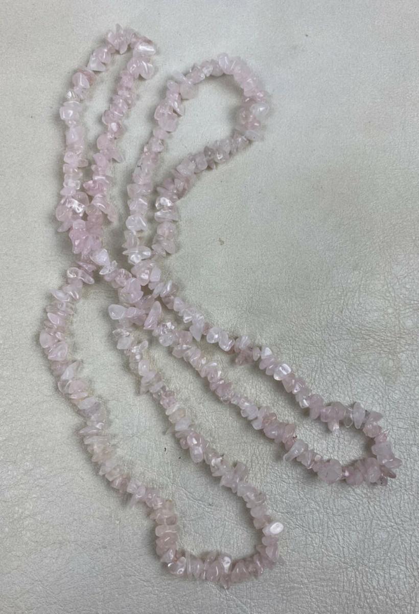 Nice condition on this 34" natural Rose Quartz polished chip necklace...Loose uncut beads...Known as a genstone of universal love..it restores trust and harmony in relationships