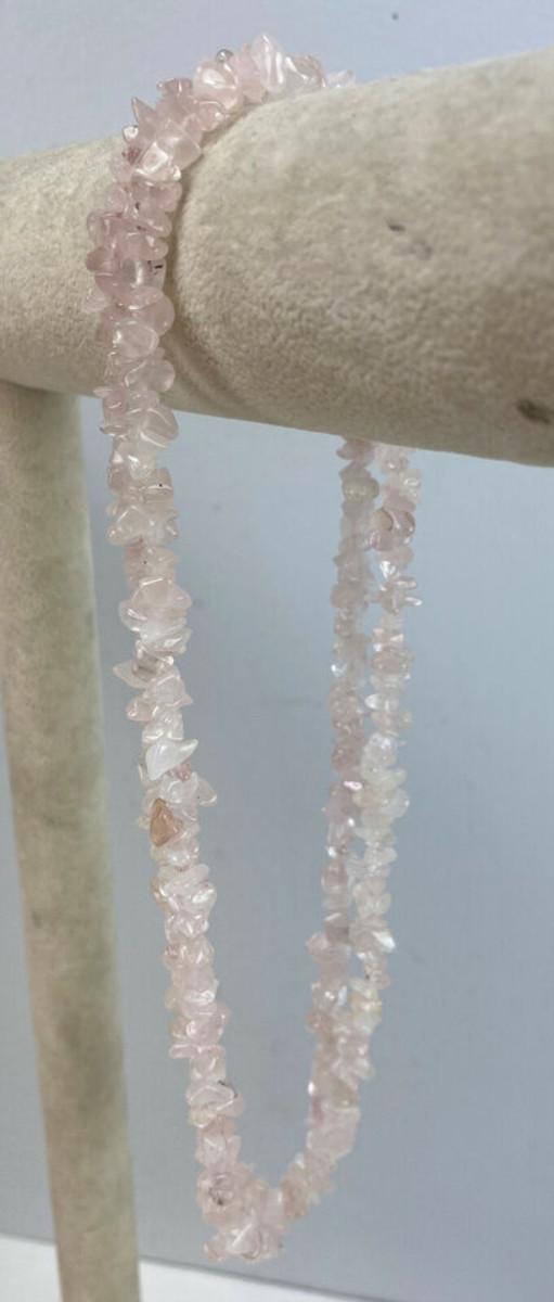 GENUINE ROSE QUARTZ GEMSTONE CHIP NECKLACE 34"