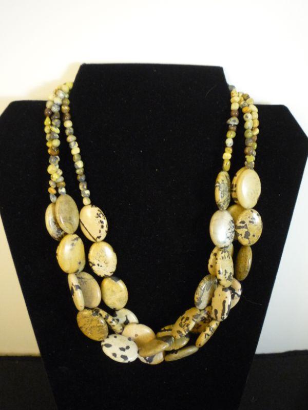 Genuine Stone - Triple Strand Necklace with Sterling Silver chain and clasp