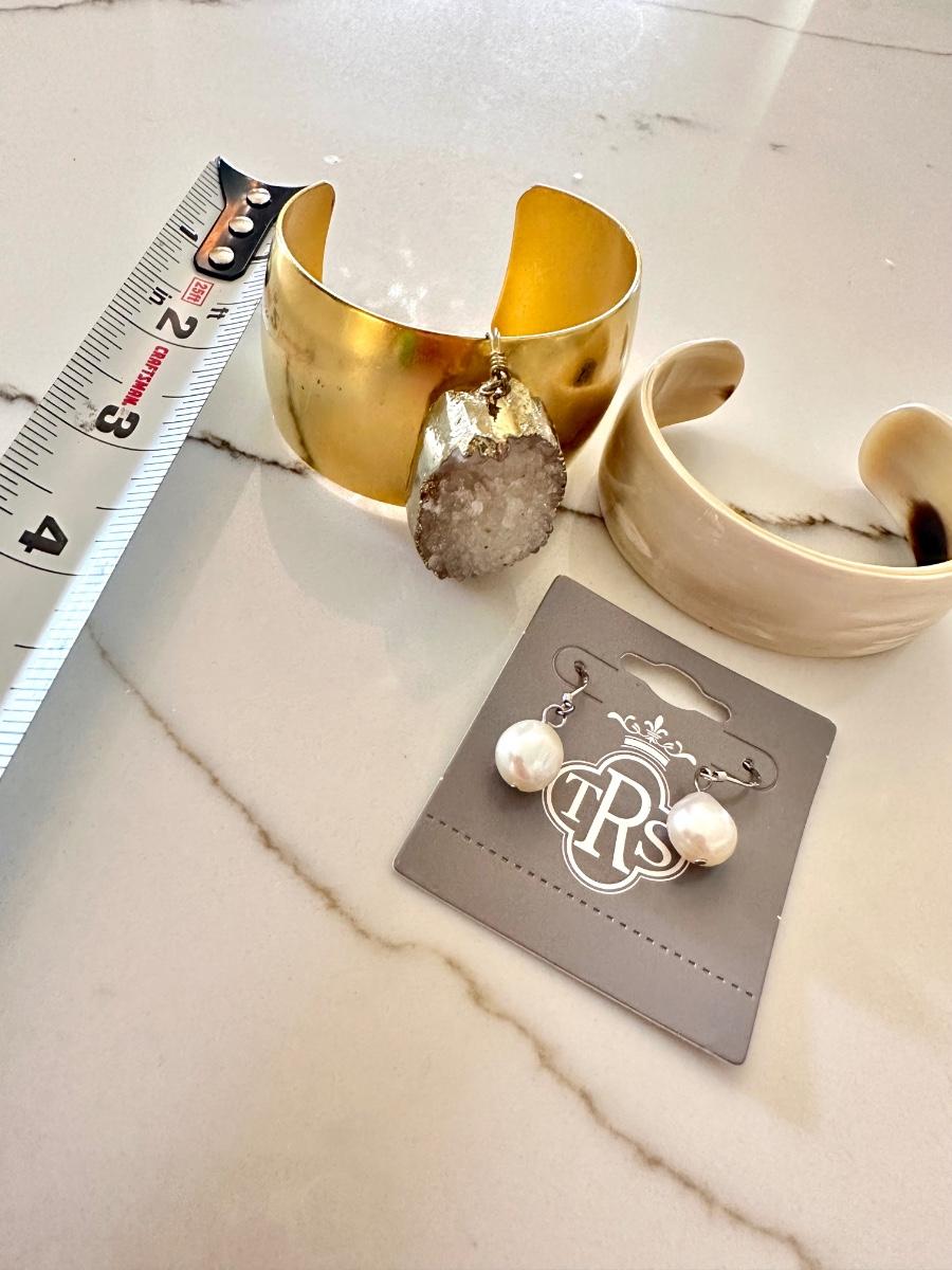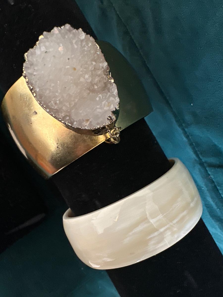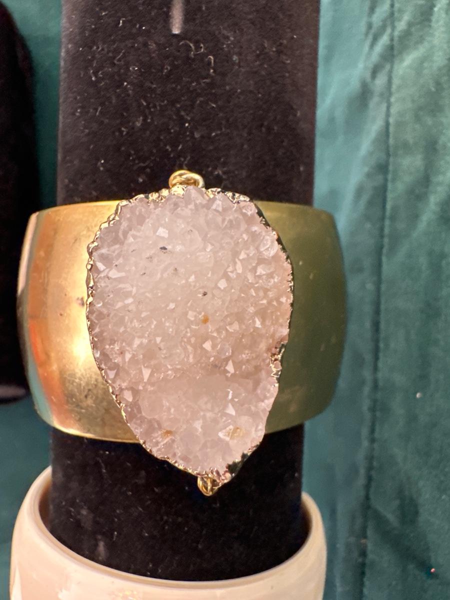 Druzy cuff Bracelet, gold tone cuff bracele and earrings
