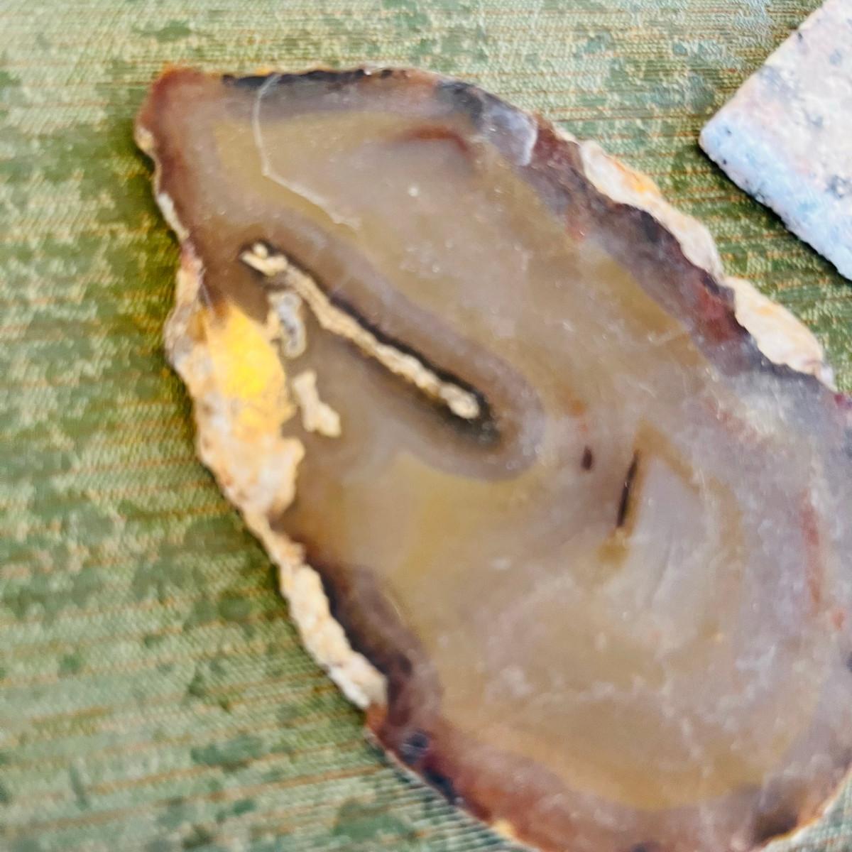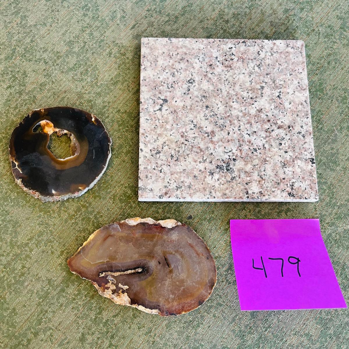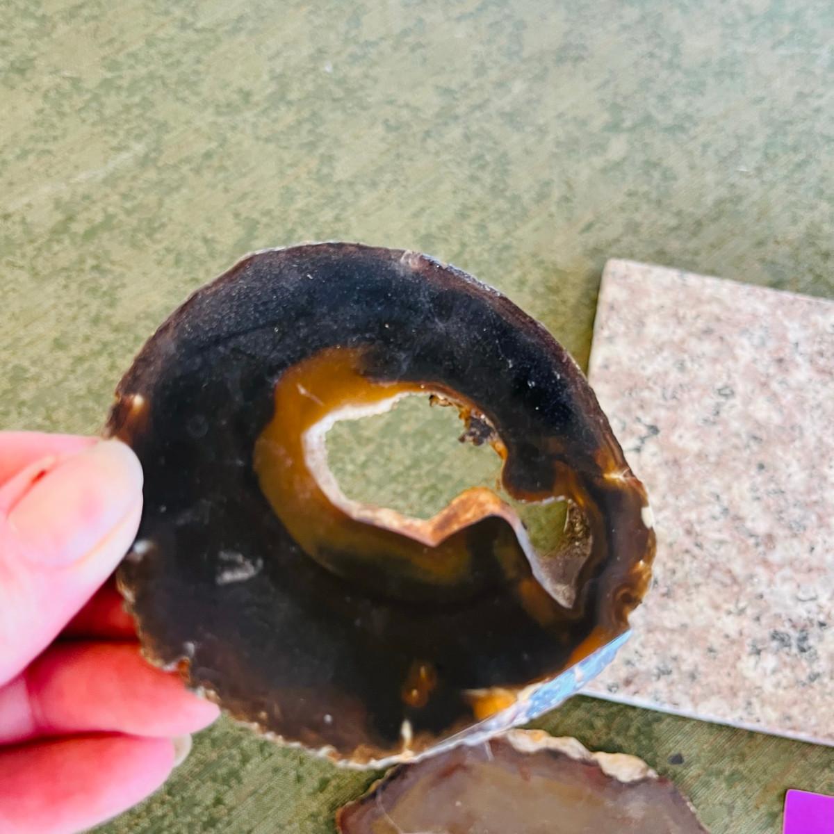 Two geode coasters and a tile.