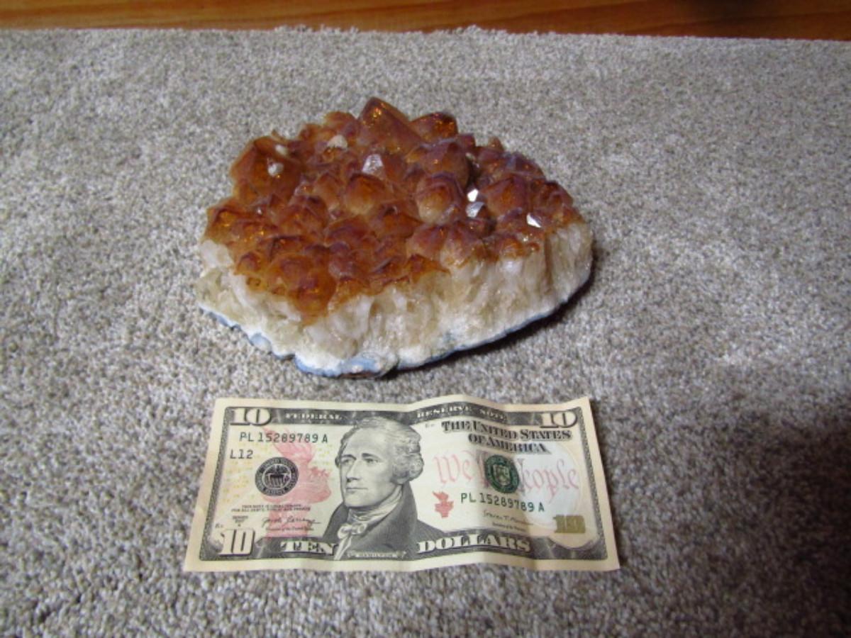 Geode Section- Dark Amber- Approx 5" x 7. Currency not included.