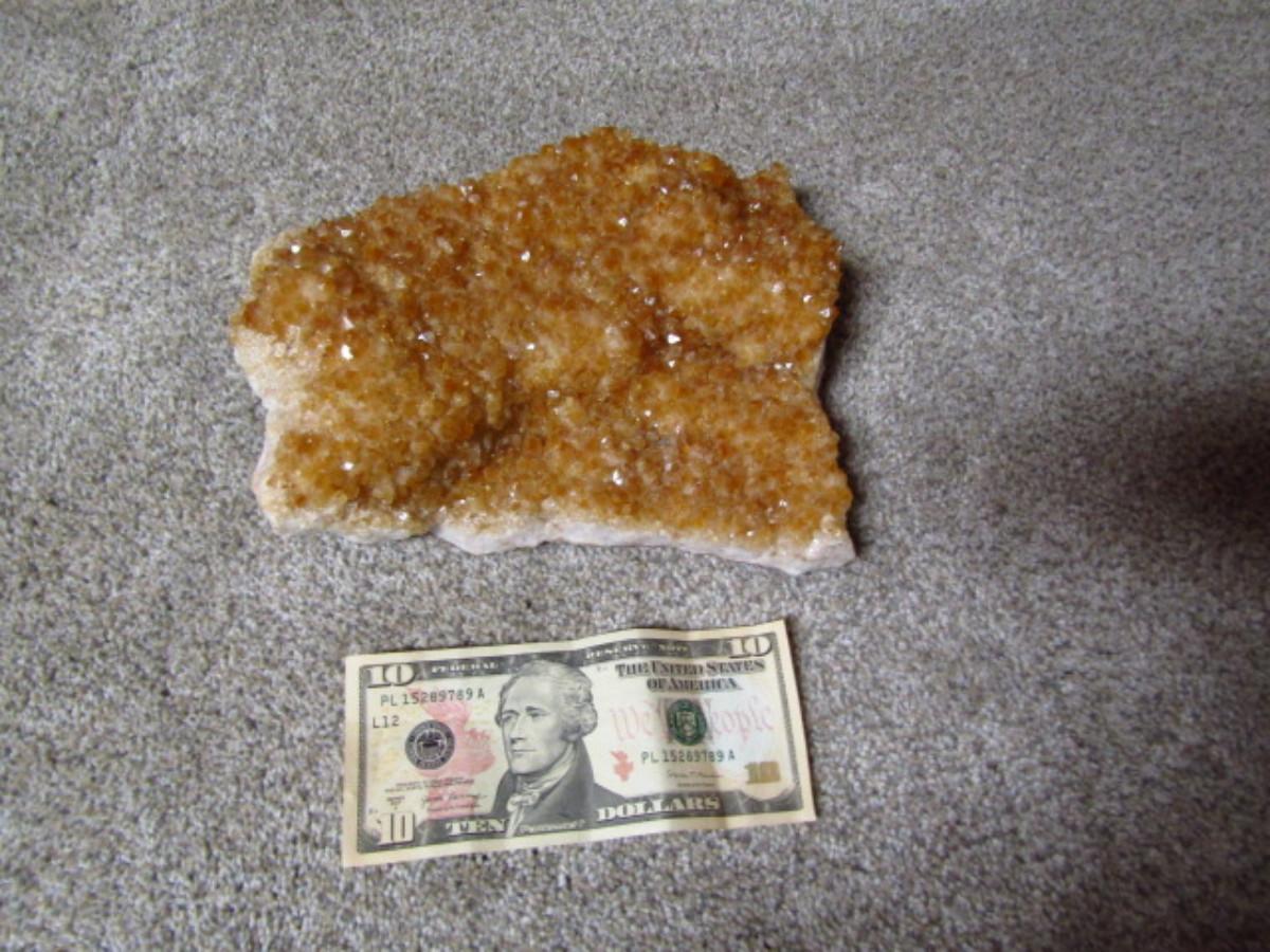 Geode Section- Light Amber- Approx 8 1/2" x 7". Currency not included.
