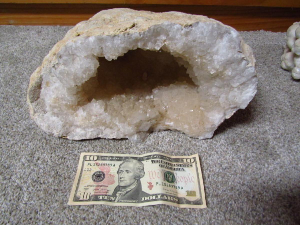 Geode- White- Approx 11" x 7". Currency not included.